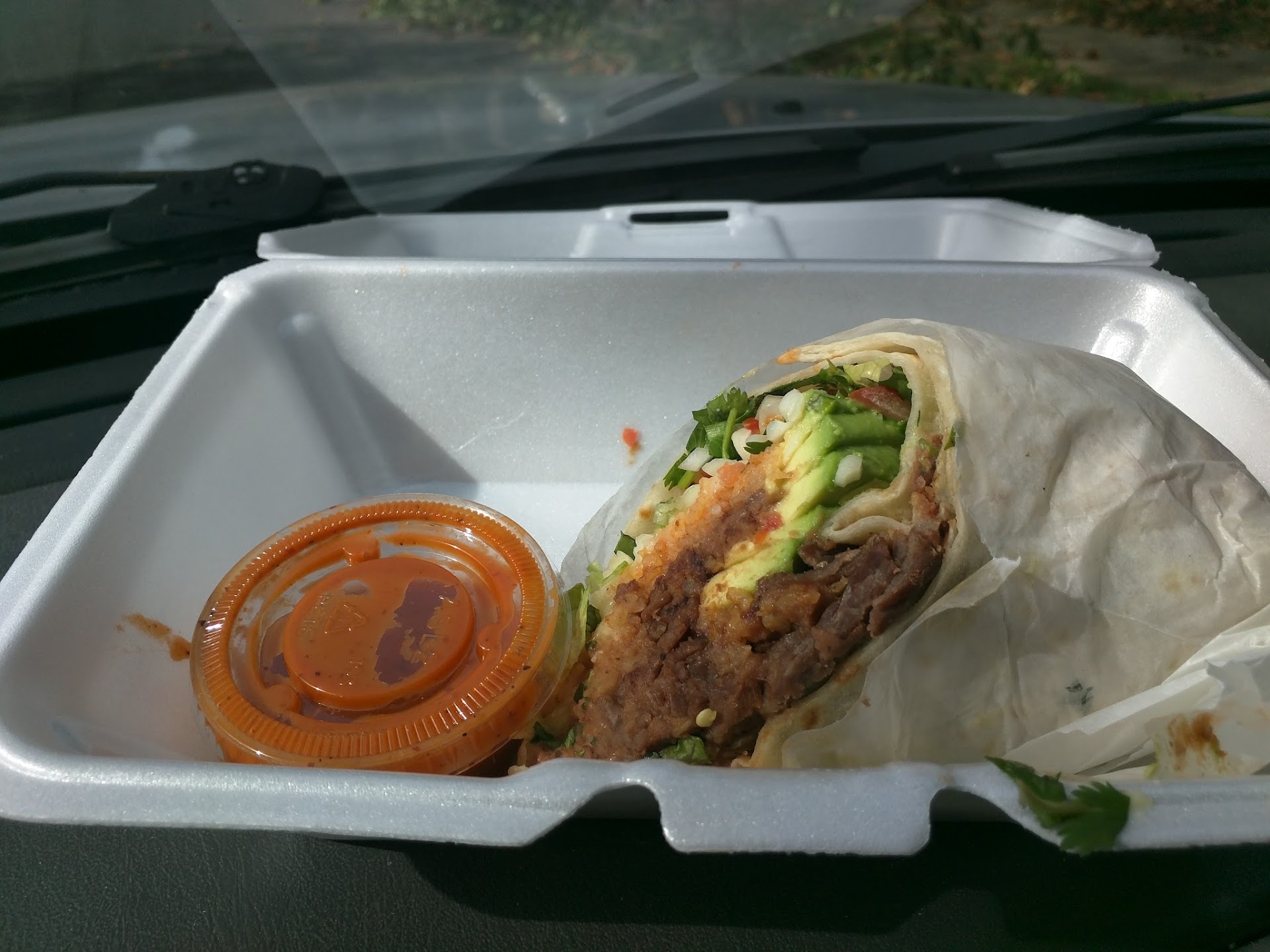 Read more$6 Burrito wrapped in Wax paper with avocado, Carne Asada, cheese and loads of cilantro packed pico de gallo. Ask for the red sauce (orange in color). Note: by default they cut in half.
