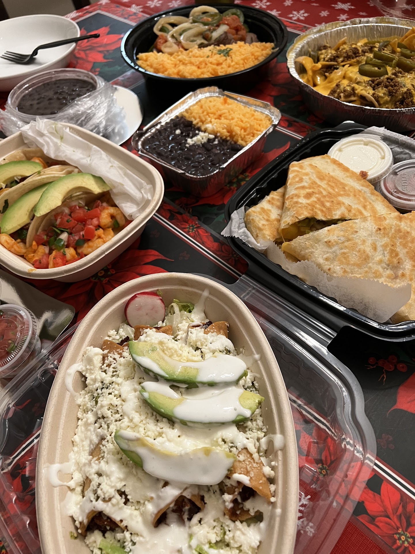 Ā Ā Ā Read moreClear location, decently sized parking lot, great service. Perfect little takeout place in the area. The food was ok but I think I should have ordered different items. We got a few chicken tacos and dishes that were a bit dry. That was pretty disappointing. The chicken and cheese quesadillas were good though. Fair warning, there is a TON of cheese. Also we got the steak a La Mexicans which was absolutely delicious. Their beans and rice were also really good. The nachos were OK though I prefer melted cheese versus the queso they pour on. Definitely need to go back and try more of their menu to see if thereās anything more to my taste!