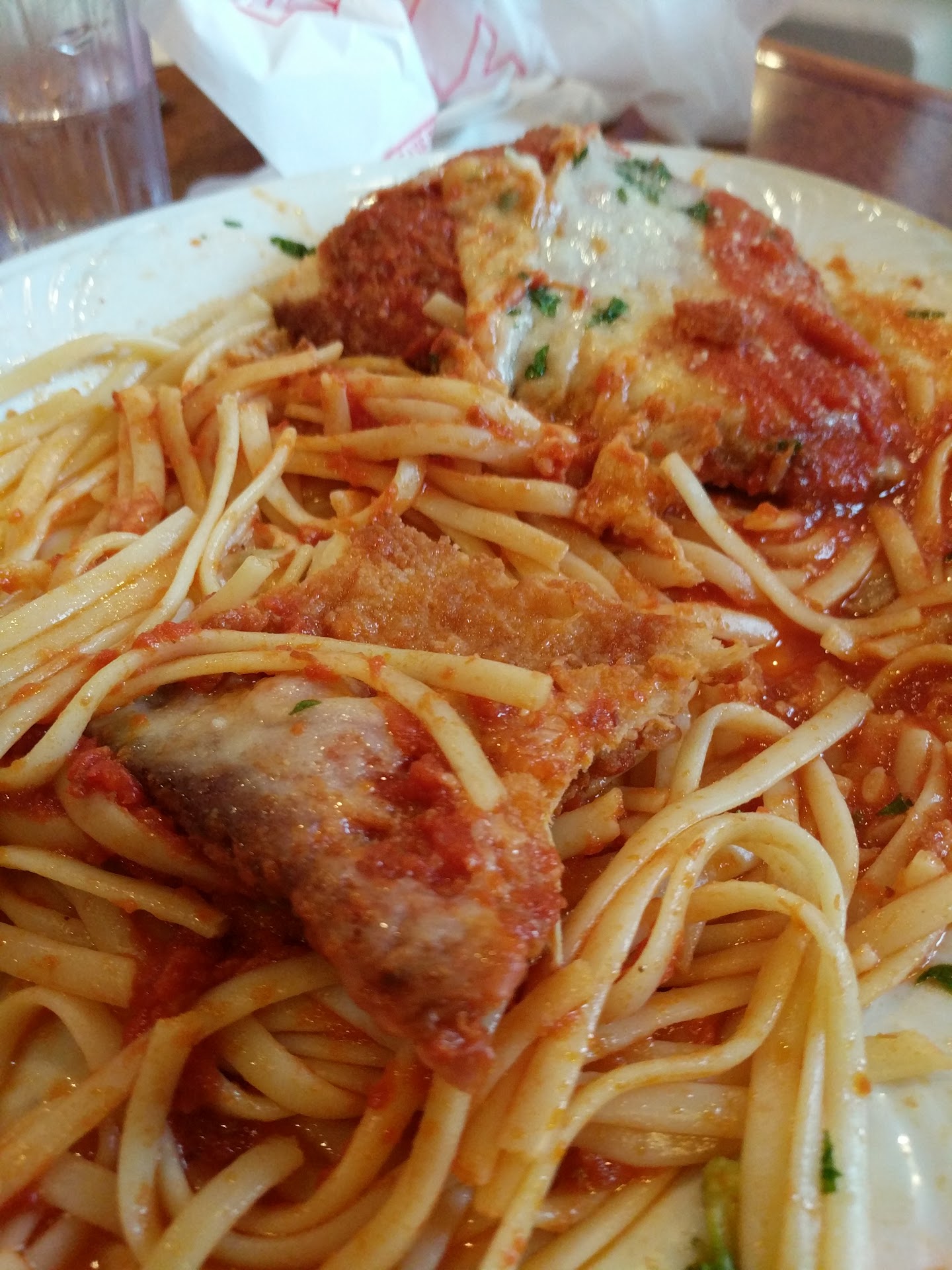 My friends chicken Parmesan was like rubber as he described it and showed me but cutting it. I thought it was a tire at first... Please cook it better so I don't have to describe it as rubber.