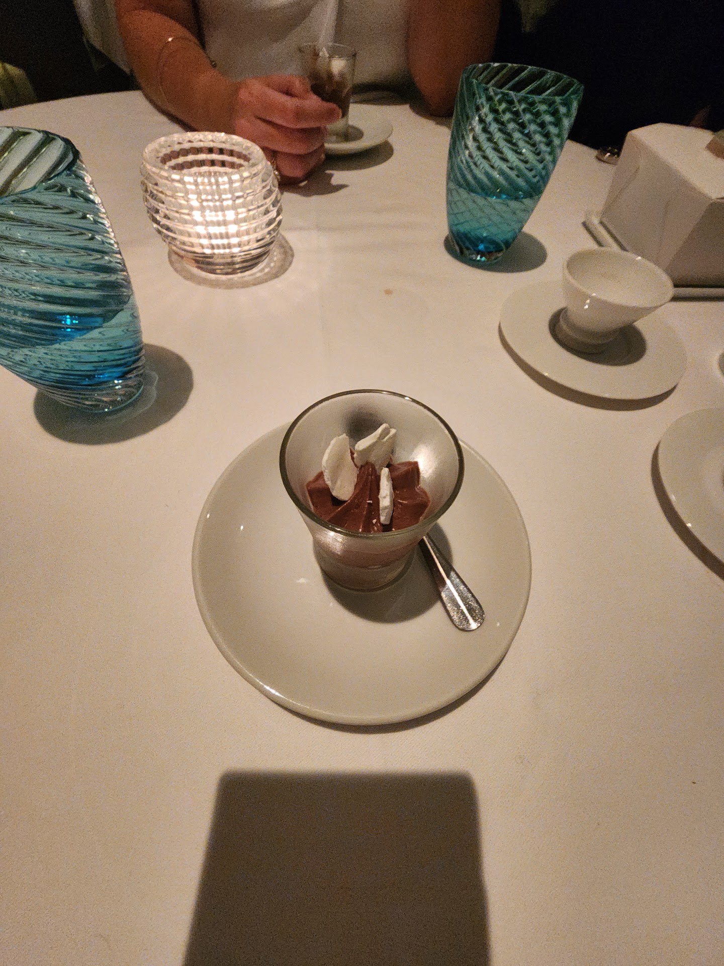 The diners next to us each ordered a chocolate soufflé which I thought was ambitious. They looked to be pushing eighty and in better shape than us so more power to them.
