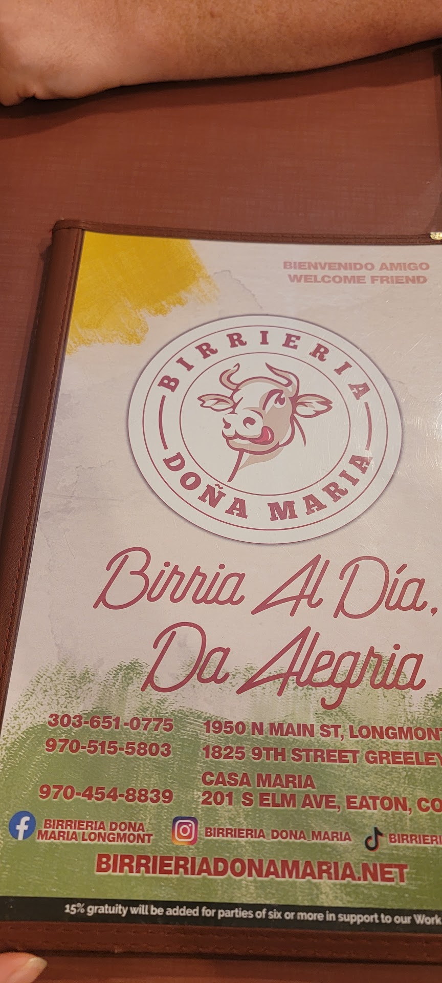 Read moreWe have visited both locations, and they both have amazing food every single time. We have loved everything that we've tried at both places. We always go for the birria since it's hard to find a place in CO that has authentic birria, de chivo, and not beef. We've tried it in many different ways, tacos, burritos, quesadillas, the quesobirria tacos, the plate, torta, etc. Every single time, delicious & tender, never disappoints! There is a noticeable difference in the service between the two locations, at least for us. The service isn't terrible at the Longmont location, it just isn't as good as the experience you get in Greeley. The Greeley location is a lot smaller, but the kind, friendly, family like service you get there is second to none. The staff there talks to you like you're family and is always enthusiastic to serve you with a smile on their face and friendly banter. We're hoping that eventually we'll get the same type of service at the Longmont location, but so far it hasn't happened. The service is fine, our waitress takes our order & everything comes out timely. That's about it. On our last visit my daughter even said, "Wow, she seems miserable to have to be here." Like it hurt the waitress to smile. Very cold encounter. And while it doesn't affect the food, it does affect the overall dining experience. The overall atmosphere is always nice. It's a clean restaurant with nice decorations and some very beautiful artwork on the walls. The mens bathroom could use some work. One of the doors is broken and doesn't close right. Once locked, it won't open. My son had to crawl under the door to get out of the stall after he got locked inside of it. Overall, awesome food, if you're looking for some authentic birria, don't miss this location. They also have great seating outdoors when the weather is nice. Service could...