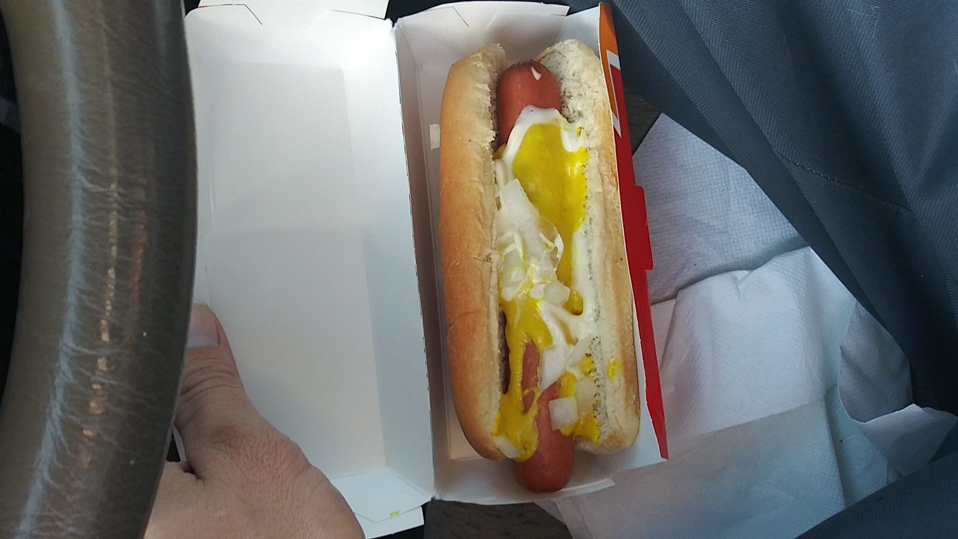 Read moreI've been coming here for the last year now and they just keep getting worse and worse when it comes to Quality Service. I don't know if it's because they're hiring high school kids or if it's because they're lazy but I finally decided I'm never coming back again. Apparently this is a hotdog with diced onions mustard and mayonnaise light on the toppings. There's about five pieces of onion on there that are not diced with the skin still on them. There's half a bottle of mustard on the damn thing and 2 thin lines of mayonnaise. The hot dog is ice cold the bun is extremely dry and hard. I ordered three hot dogs like this and they all are in the same shape. Let's say out of every three times I go only one out of every three times is it even close to right. The people are nice the food sucks and the service is just as bad. Even if I speak as slow as a robot and clear I have to repeat my order at least twice. I remember back when this place used to be really good and hot dogs cost a dollar. Now you have to pay over $3 for something that's worse then a gas station hot dog. I'm very disappointed with the...