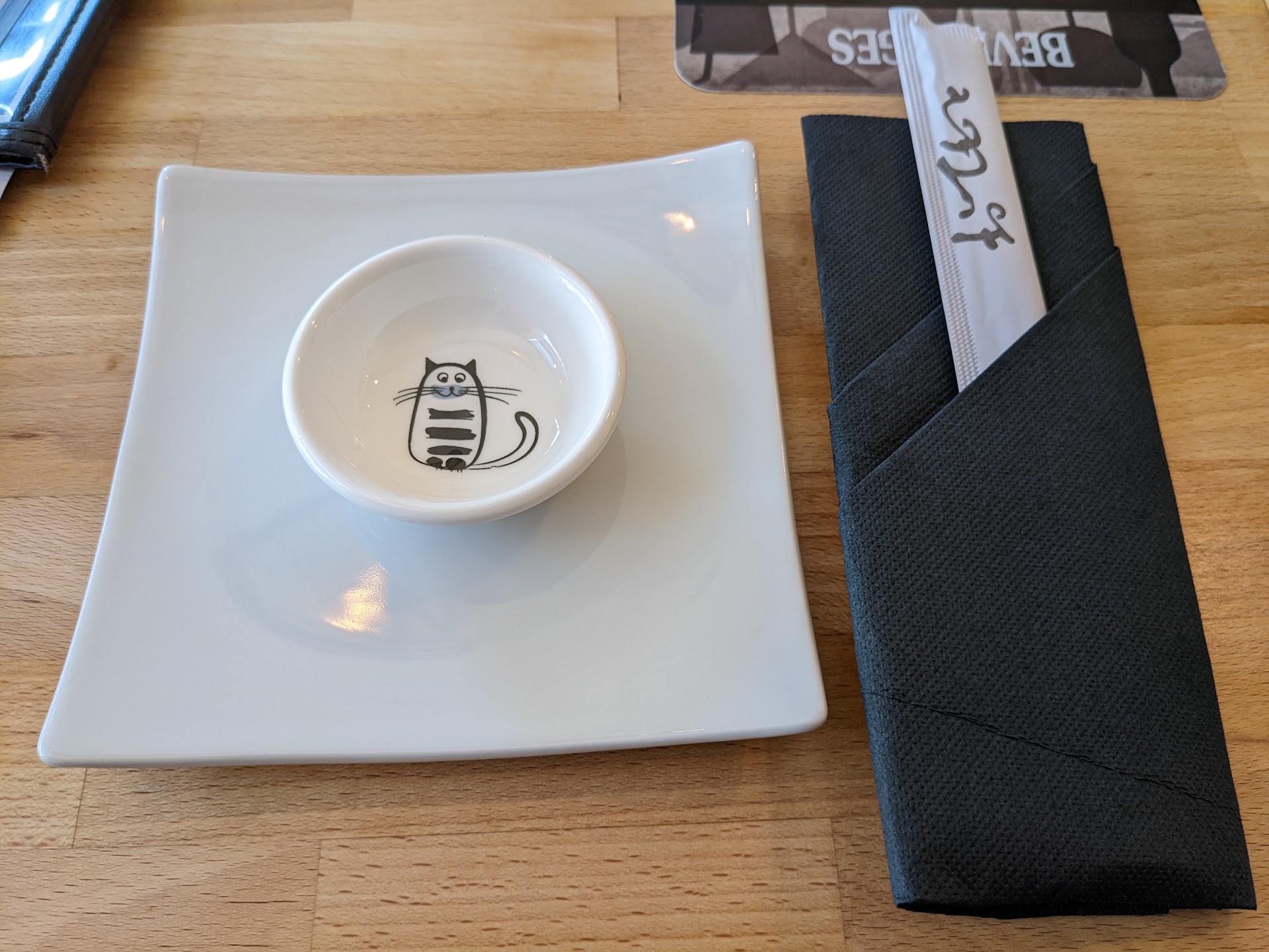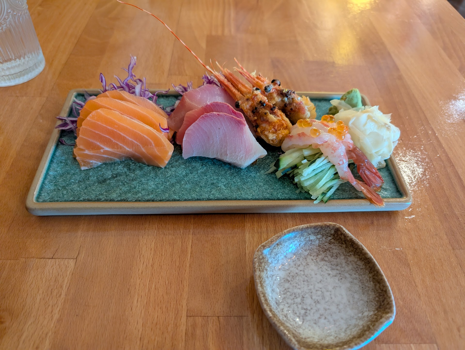 Service: After three visits to our table to drop off food, the waitress just looked at the stack of dirty dishes on our table and just left them there. I angrily moved the plates to the empty table next to us and slammed them down. Nothing is more irritating than eating in front of a stack of dirty dishes when the waitress has been by two or three times and had plenty of opportunity to pick them up. We were one of only two tables in the restaurant at the time as well, so they definitely were not busy. It’s insulting. We had to ask for water refills as well. How tacky is that in a sushi restaurant?