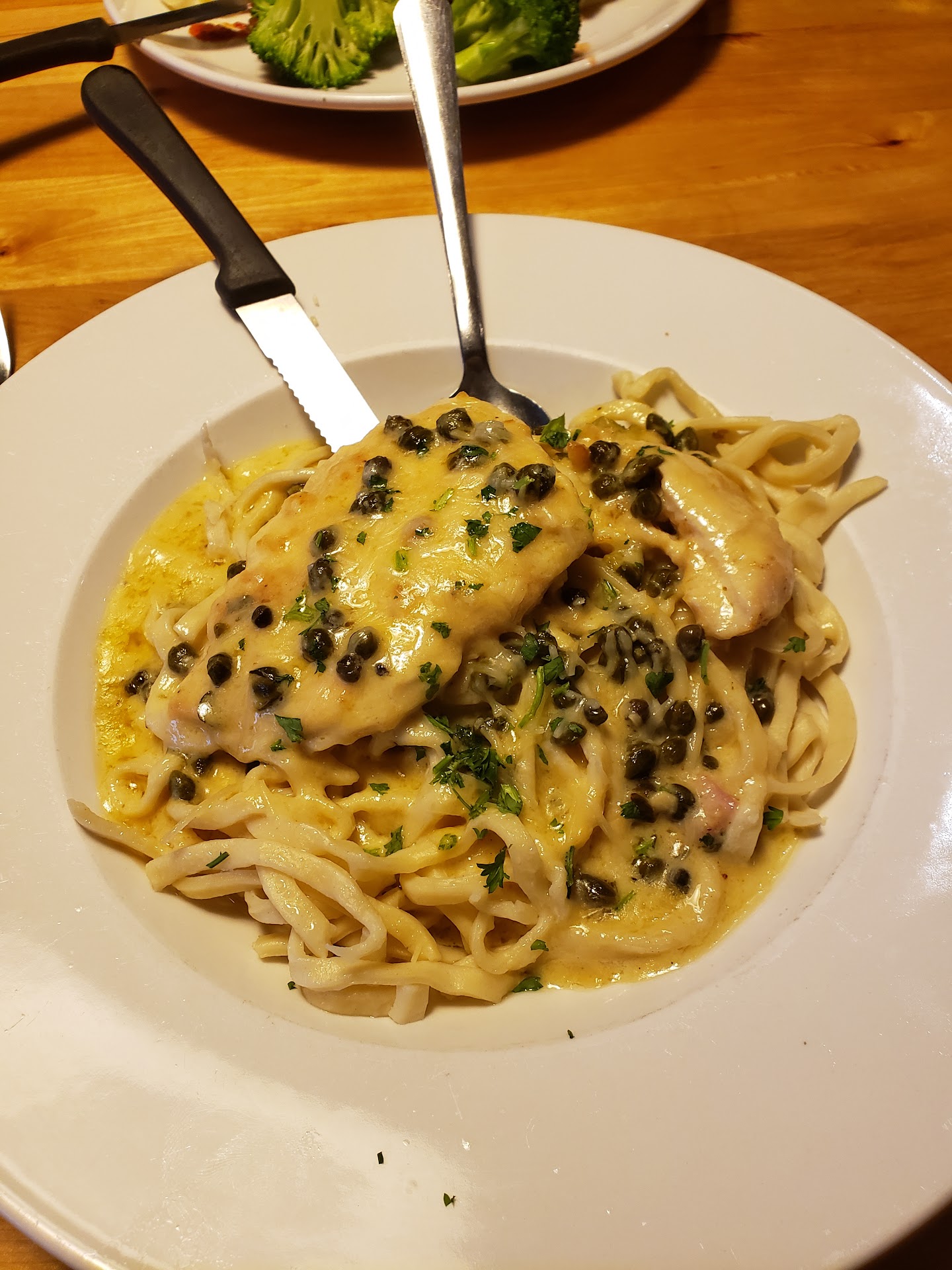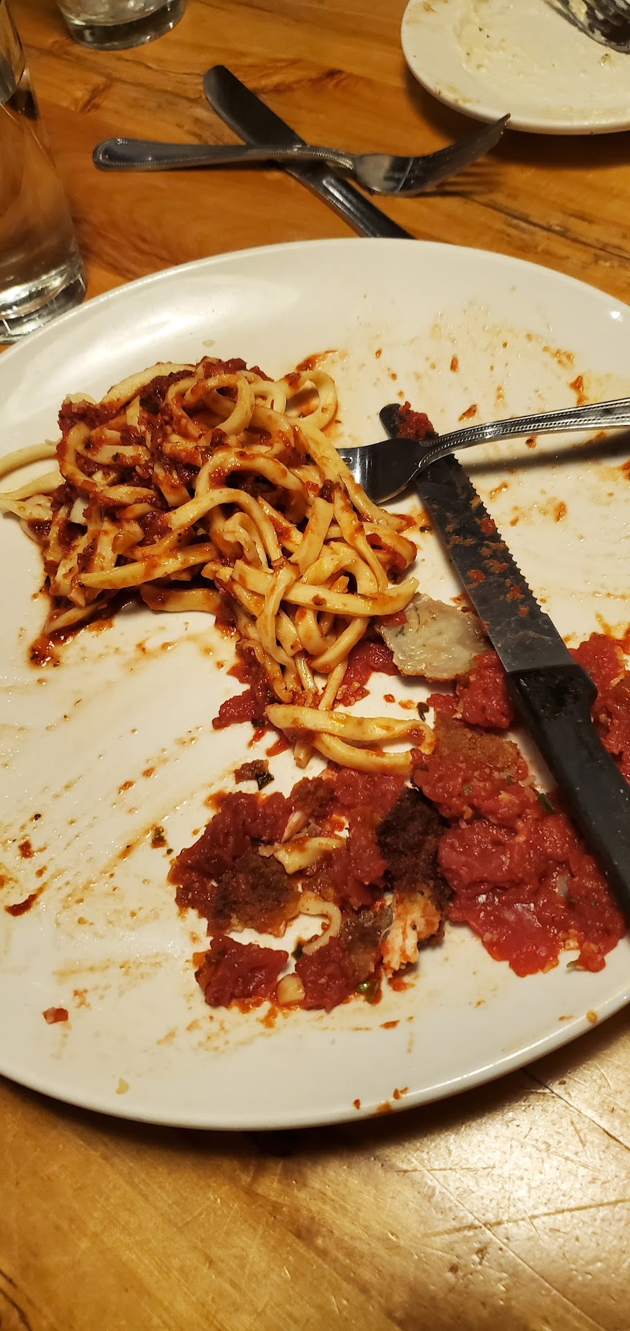 At 6:30, we approached the host stand again and were immediately taken to our table. The waitress was fast to arrive and work with my wife on selecting a wine, but the length of time it then took to take my drink order made clear that the place was, perhaps, too busy. The food, however, was spectacular! The clam appetizer left something to be desired, but the carbonara was excellent!