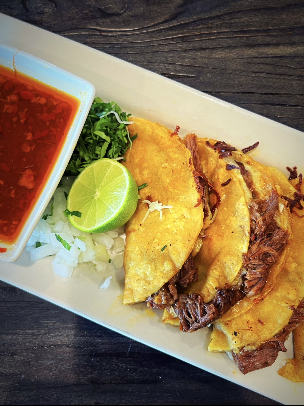 The birria tacos are insanely good!!! Pro tip — the cilantro and onions are not decorative, put it in the taco!!! The consommé was absolutely delicious and compliments the cilantro and onions!