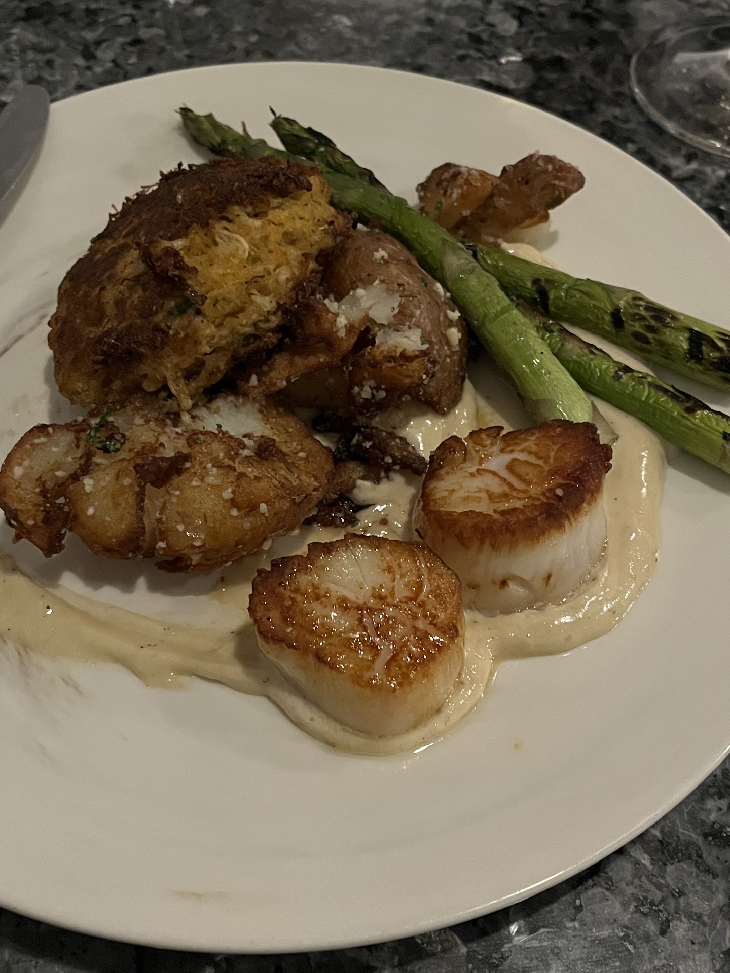We ordered 3 courses (appetizers, salads, entrees) but we ordered everything at once. The bison meatballs were good, the burrata was average but didn't have much taste. The beet salad was almost funny, there was so much arugula and only a few quartered slices of beets. The wine was good, and my husband had two old fashions and a scotch. Both were good.