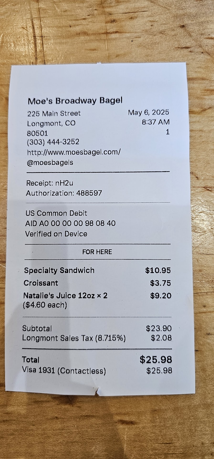 Read moreMy order was $25.98 but this blond lady wanted to charge me about $40. When I complained she said it was because she charged twice the bagel, and the she said it was about $28, because she added $1.55 for the cream cheese I asked to be added to the bagel, just a bit of cream cheese for $1.55. I asked the same for years and I never had this crazy charge added. I wonder how many people are being scammed by this lady, adding hidden charges for nothing. To be honest, everyone else always treated me really nice and never added crazy charges like this lady. She should be fired immediately. After years as customer coming to have in peace my breakfast, I will never come back. She is not only a scammer, she never added the cream cheese and the pickle slice was extremely thin, it seems she got mad because I said she added extra charges. Too early in the morning to be dealing with this kind of person. I also want to add that the $1.55 is nowhere on their menu table, nor in the website, and they never said it was extra when requested. Just something this lady came with to...