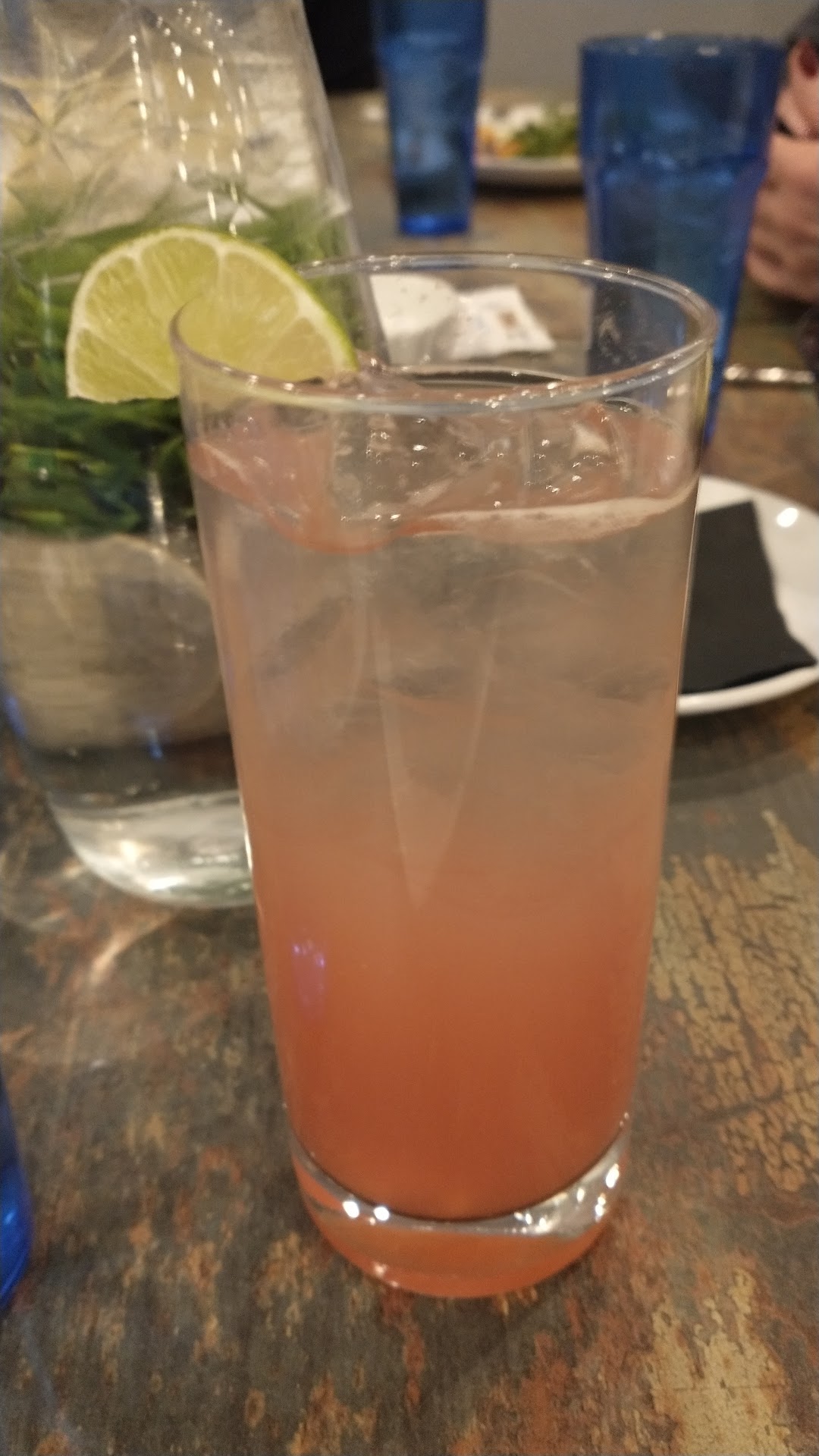 I loved that they had plenty of non-alcoholic mixed drinks, interesting things with watermelon pulp and various herbs and things like cucumber and rosemary. The one shown is the Cool Water. Still a little sweet for me, but the waiter was very kind and brought me an extra glass and extra soda water so I could water the syrup as much as I wished!! That was a really wonderful extra service I hadn't expected.