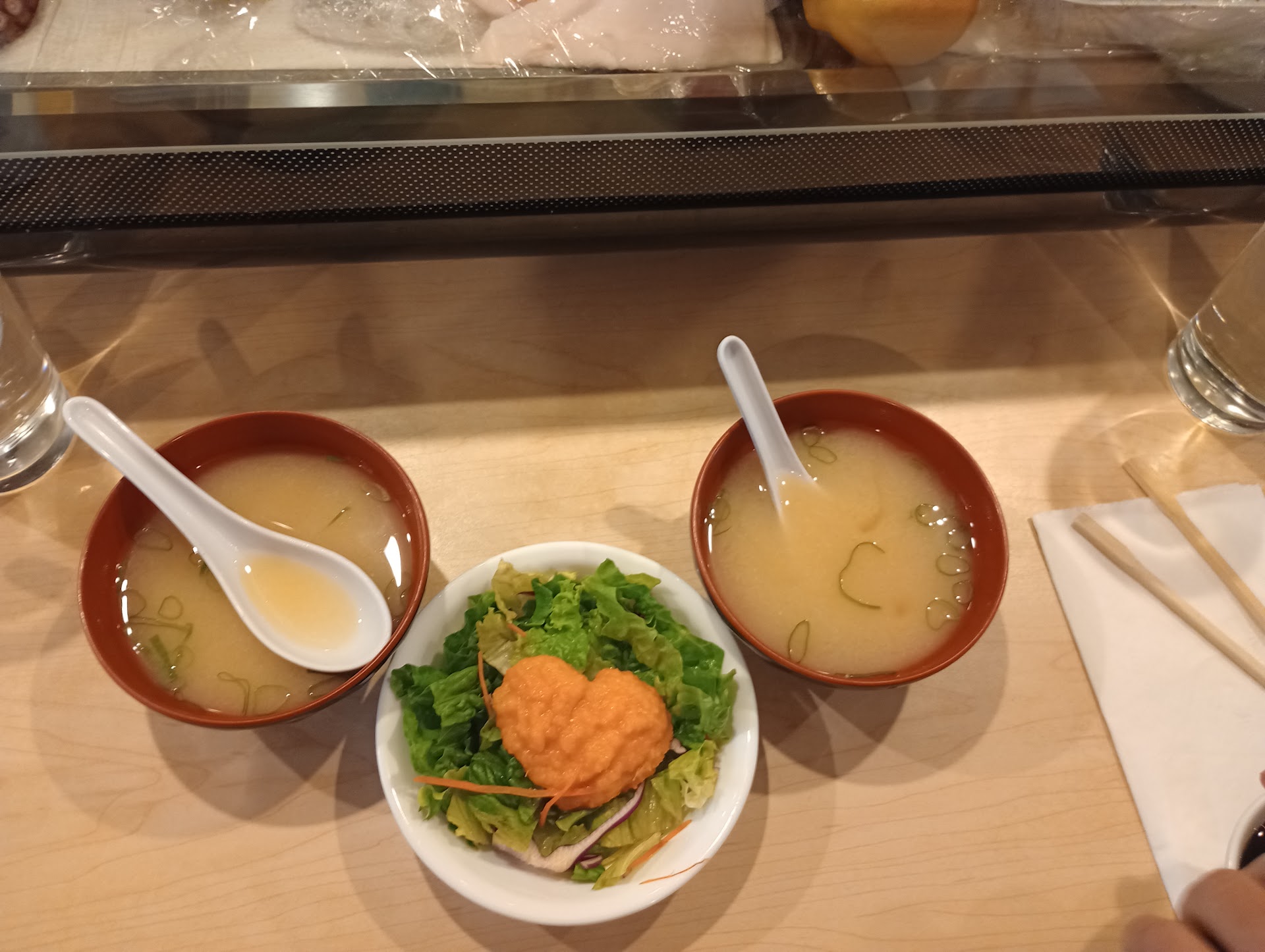 Whoever wrote all these greats reviews are clueless about quality sushi and Japanese food. This restaurant is a is disrespect to Japanese food. First off this place is not run by Japanese people. Many times people said thank you in Mandarin Chinese. Me my wife and daughter came in 1 hour before close, which they close at 8:30 PM on a Saturday night, we ordered allot of food so we could take some home. Let’s talk about food. The miso was barely warm and way to much miso overly salty. My daughter loves salmon, the salmon was not even cut properly it was like chewing on a piece of raw meat and the fish quality was not bad but not fresh either. We had a roll with shrimp tempura and they put k-rab in it because they were to lazy to make the roll properly. We also ordered takoyaki and got some bitter fried ball of dough, Japanese do not fry takoyaki. I can go in and on, but what really made me angry are the rude and disrespectful women that run the front room they basically shoved the bill at us and hurried to get us out of the restaurant while they sat at the counter eating food, another thing that would never happen in a Japanese restaurant. I would respect this place if they made high end Chinese food from China not American Chinese food but this place will never get my business after spending over $150 for...