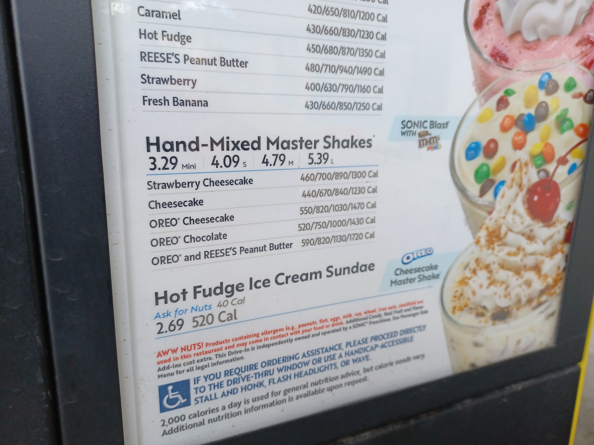 Read moreOrdered a mini Oreo& Reese's master shake from the menu, listed at$3.29. The employee charged me for extra Reese's at$3.88. I explained that I didn't want extra Reese's, I just wanted the menu item as seen in this picture. They told me they can't make price adjustments, and I explained that I didn't want a price adjustment, I just wanted them to honor the menu price. The manager came out to my car, where I pointed out what I wanted and the price. The manager got pretty nasty at that point, told me he was charging what he wanted, scared my kids and said he was denying me service. (Literally, as we were driving away, my kids said, "That was really scary.") Won't be returning.