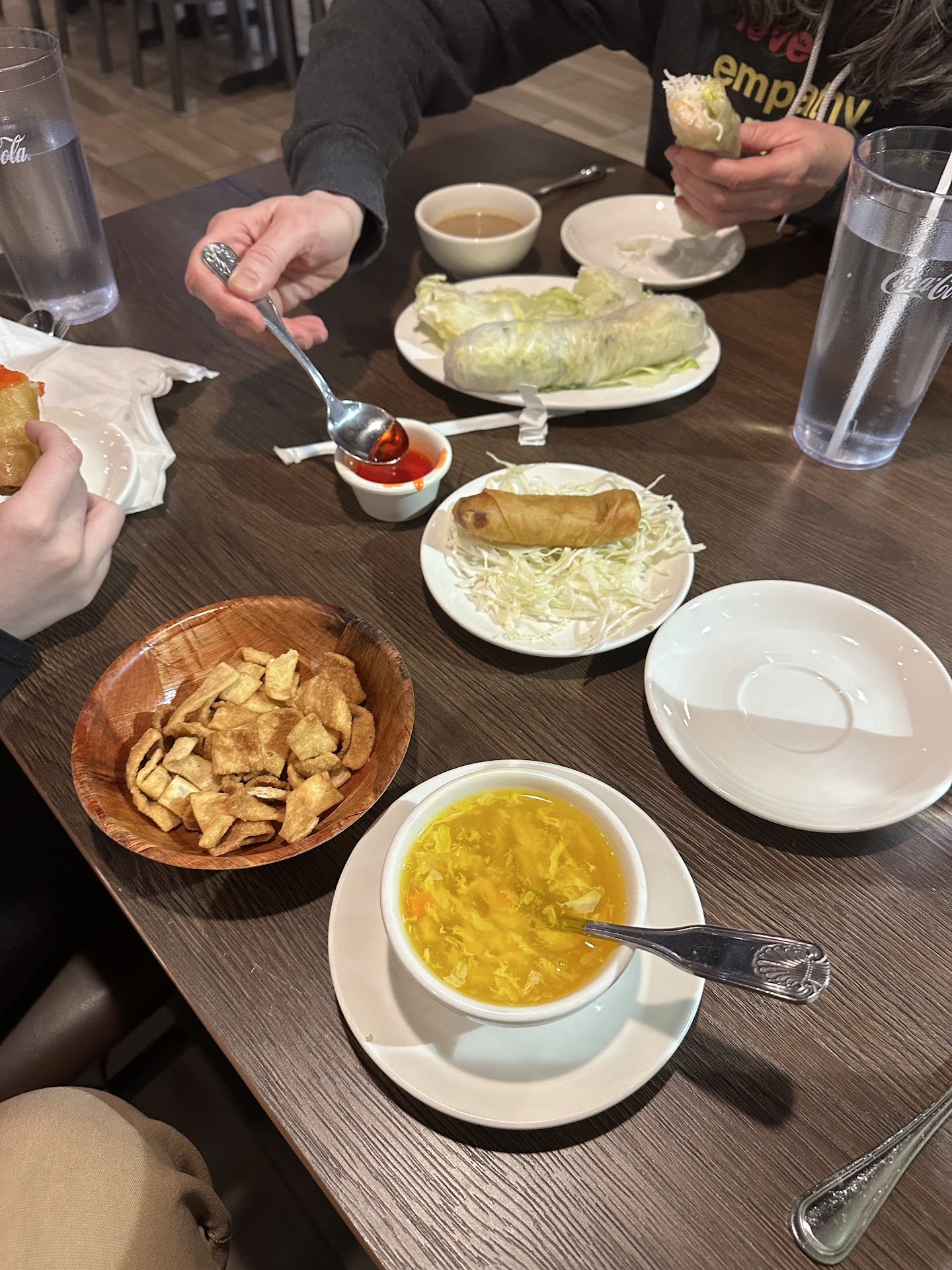Read moreWe had a fantastic time at the Sun Cafe. In the first image, we ordered 1) egg drop soup, 2) vegetable egg rolls, and 3) shrimp spring rolls. In the second image we ordered 4) chicken lo mein (with added vegetables), 5) tofu pad Thai, 6) Thai fried rice with shrimp, and 7) hot tea. Everything we had was delicious, but the vegetable egg rolls and the pad Thai stood out the most (the sauce was the best pad Thai sauce any of us had ever tasted). The kitchen was very accommodating to allergies, and everything came out in a very timely manner. We could tell they were busy (as they should be) but we never fell through the cracks of their service, they came to check up on us frequently. The service staff were very friendly and kind, and we felt very welcome and appreciated there. The interior of the restaurant is very clean, modern, and well-lit. We brought home lots of leftovers because their portion sizes are huge despite the cheaper prices compared to other Chinese restaurants (which was very appreciated). I’m so glad they opened up in Longmont, the food and service is very high quality and we will definitely be returning again soon....