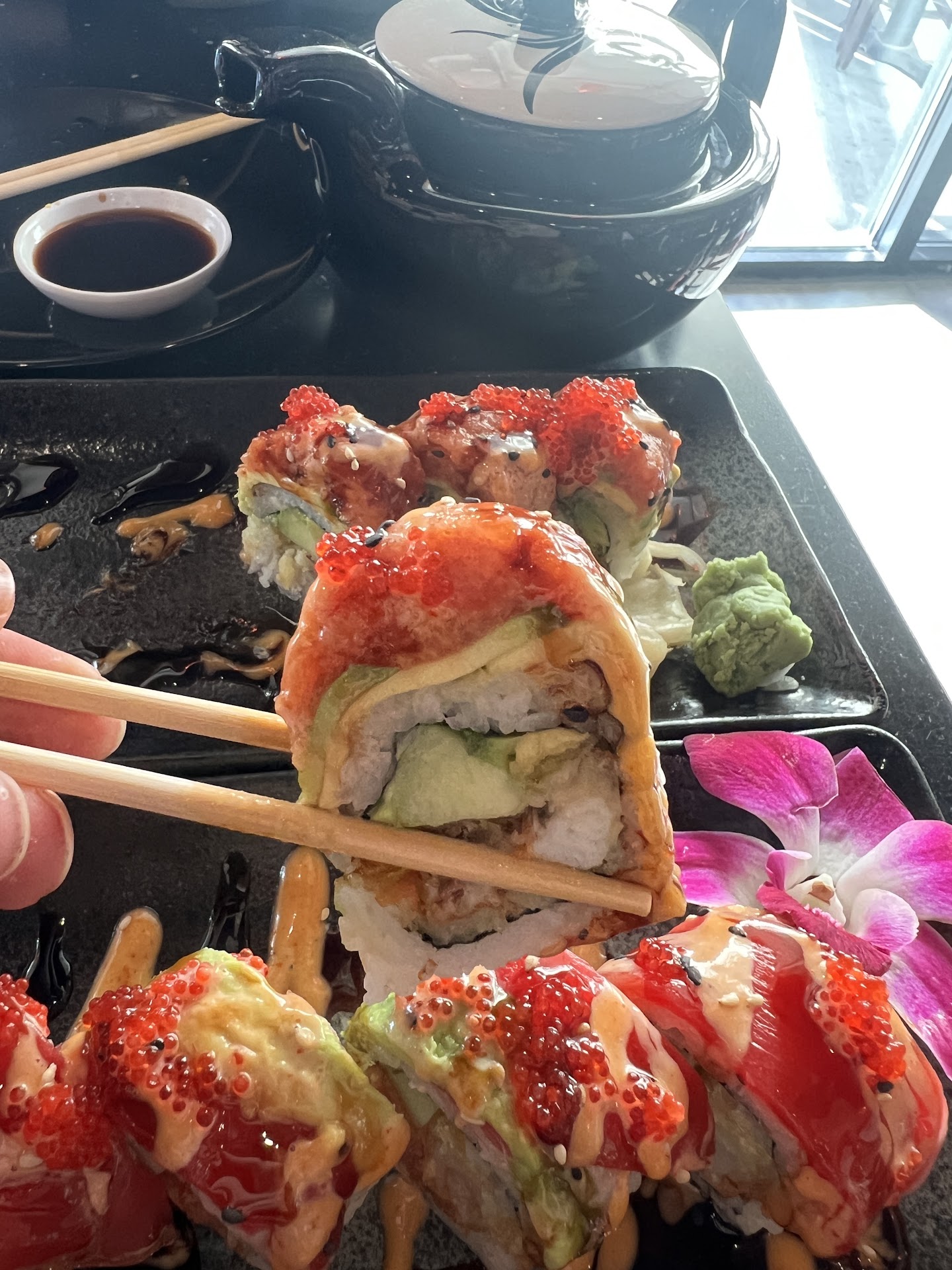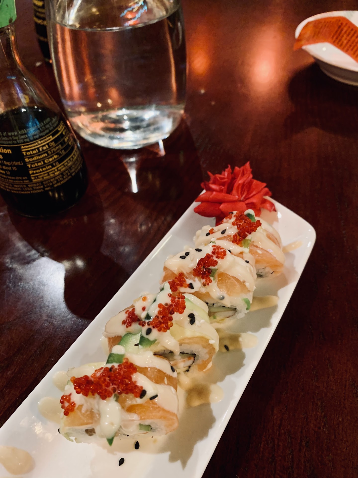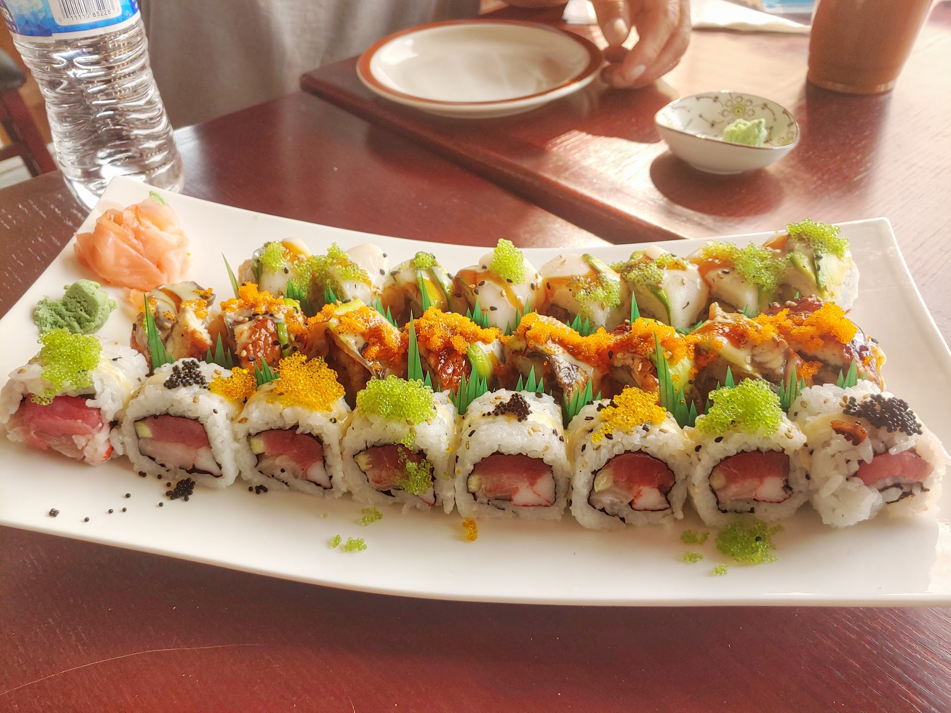 Wait time was reasonable even with a few other tables large tables ahead of us. I went on Labor Day. Unlike many other places, drinks were only being served in disposable containers, including water. Other establishments are taking the time to sanitize their glasses, but not here. So each drink is individually charged. We ordered some seaweed salad as an appetizer. It was about half a cup of salad for 6 dollars. The Thai tea tasted off somehow. It was thick, viscous and too sweet, like it was mixed with a lot of caramel syrup. We ordered a few rolls that were quite tasty and looked nice, but the only aids to presentation on the plate were plastic grass, like when you pick up sushi at the grocery store. The wasabi is just the normal paste served everywhere, and Kikkoman soy sauce. I ordered twenty pieces of sashimi and sushi rice on the side. The rice had too little rice vinegar and sugar as seasoning and they added furikake on top. This meant the rice didn't go well with the fish anymore. However, it was the right consistency and stickiness and none of the rice fell apart on our other orders. It was properly pressed and shaped. The sashimi was all frozen. I wish I was exaggerating, but I was eating ice crystals. For the most part they were good cuts, but the whitefish was paper thin, and still frozen. The yellowtail also had a bit of a stronger taste than is normal. I didn't even think about returning the food because I was so hungry. I should have. After our first course, we ordered six pieces of nigiri. None of that was frozen, thankfully. Overall, I would say this place is worth visiting if you only order rolls. The quality of the fish is not high enough to really enjoy an experience here if you normally order nigiri. Avoid the sashimi unless you want to take your chances with frozen fish. I would rate this at 2.5 stars if I could, but I...