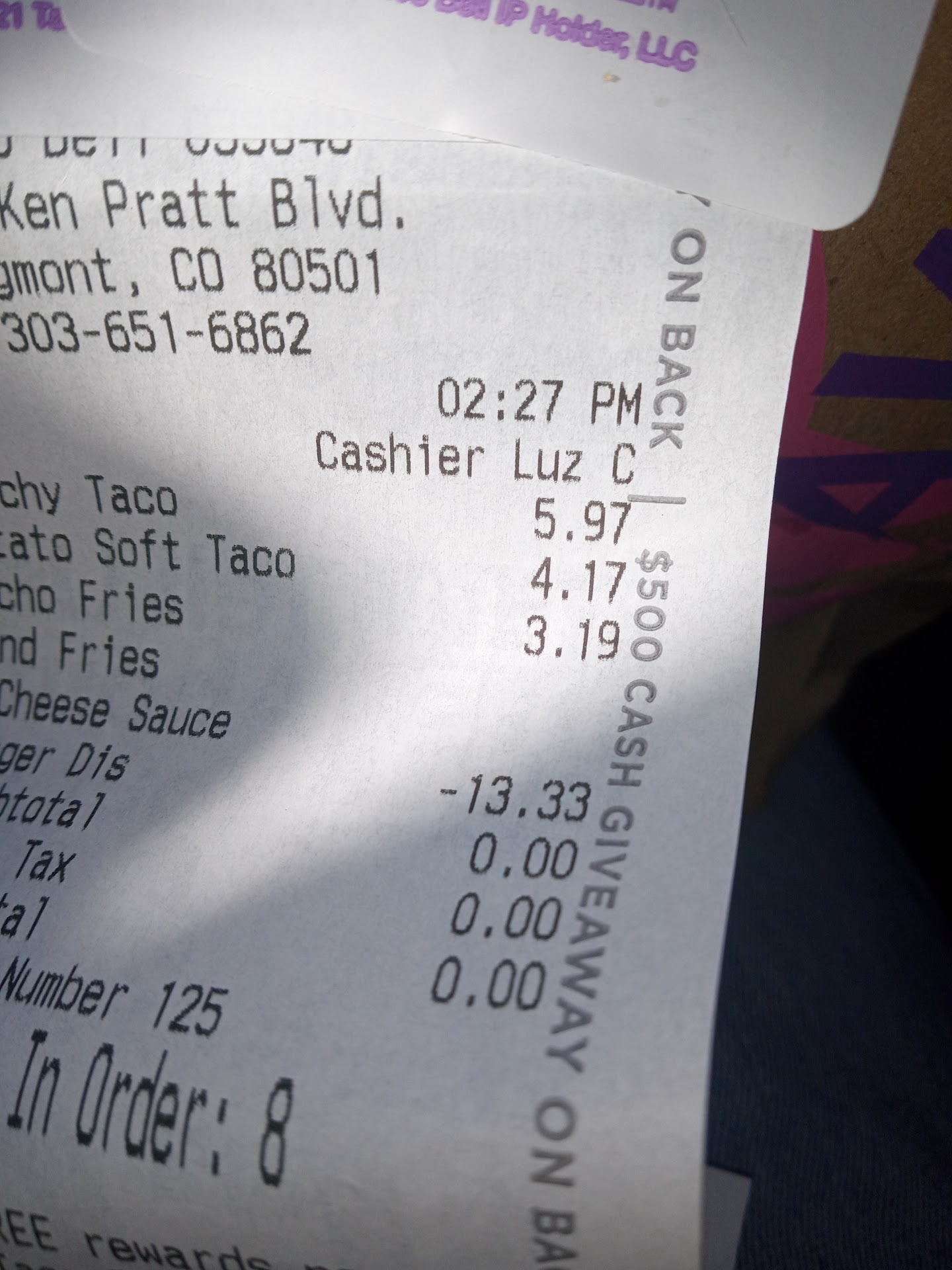 Read moreI very seldom write reviews, but after my experience today, I needed to sound off. I stopped by to order two of the new cantina chicken quesadilla meals, a feature item that’s been out for about a month. Whoever tried taking my order acted like he had no idea what I was talking about, almost as if he was asleep. After repeating myself three times, he claimed they didn’t have that. After I told him I was looking at it on the menu board, he entered the wrong meal on the screen. I corrected him, and again he asked if I wanted an item completely different than what I asked for. Then, he went silent, nobody helped him out. Finally after a few minutes of back and forth frustration, he got it right. I asked for a few extra sauce packets too. Additionally, this store consistently has the slowest drive thru. Not sure if they’re always understaffed, but with how much Taco Bell costs these days, removing the fast from the equation just leaves you with sub par food. We left with an up charged drink that was different than what I asked for, and no extra sauce packets (which I paid extra for). $27 dollars for two meals for fast food is insane. Go to Chipotle for that price, you’ll get better food for the same price. After mostly bad experiences here, I’m turned off of Taco Bell for now, and won’t...