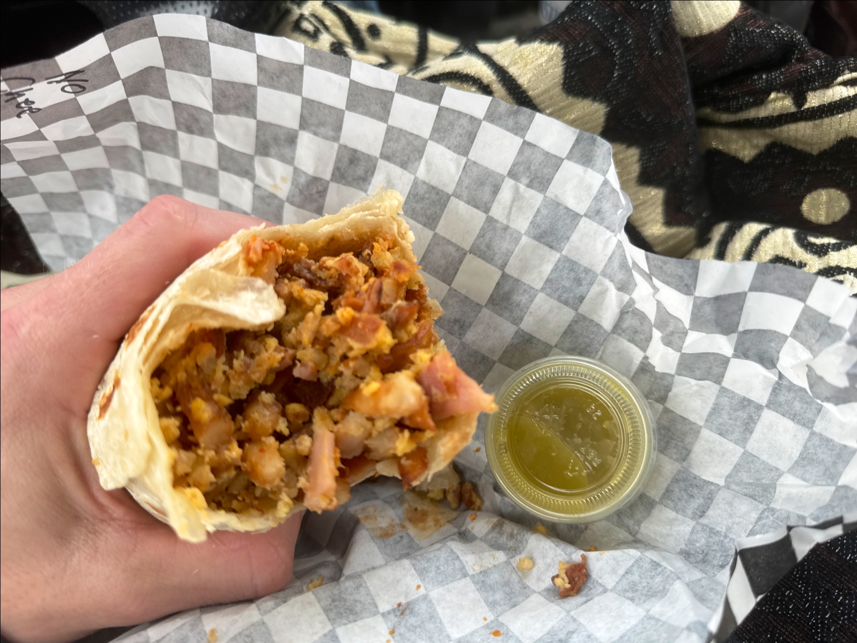 Lately I’ve been getting the monster burrito. It’s like 5 meats, potatoes, egg, and cheese. I get 2-3 and then I can eat them for a couple days. The ones I get in the evening are better, they do better at grilling the tortilla and getting it nice and crispy.