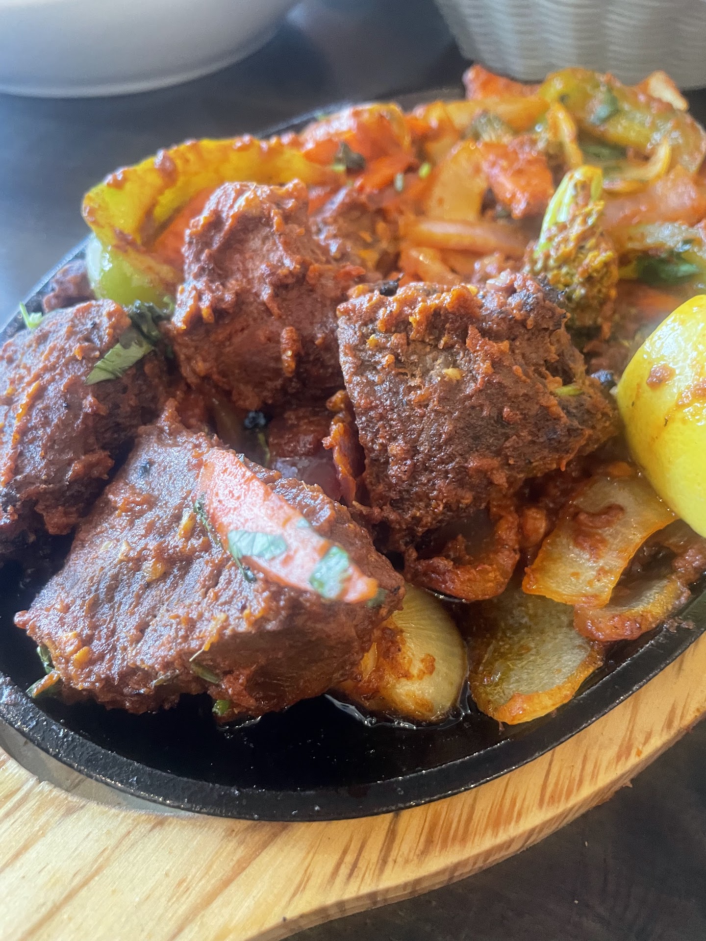 Ordered goat curry (hot) because it was listed as a chef's special, the flavour was quite good and spicy, but unfortunately there are numerous bones with no meat attached. Take caution when chewing it to not break a tooth. The rice that comes with is good too, I liked to mix the curry into it and also the naan. I would like this with more meat to bone ratio, I'm not sure why, but every place I've order goat curry there seems to be always quite a bit of meatless bones in it...so maybe that's normal? Maybe goats don't have much muscle or something, I'm not sure...