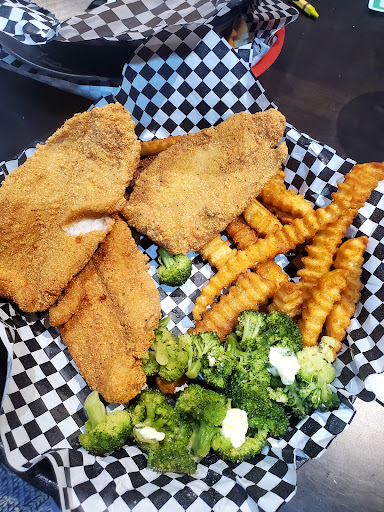 One star and that's only because the wait staff were very pleasant and on top of taking care of us (for the first half of our visit anyways). After receiving food they seemed to disappear. Went and ate there because of all the great Yelp reviews but now believe they must've been left by employees or owners or someone other than actual customers. Most reviews raved on about the fried pickles and im a HUGE fan of fried pickles but what we received was poorly breaded, extremely salty and then there's the matter of lifting a pickle off the top just find a POOL of grease underneath I'm talking about so much grease I could've scooped it out with a spoon! And the ranch dressing the reviews spoke so highly of was some of the worse I've ever tasted. I ordered a hamburger. The bun was a greasy mess, the burger was so bland completely unseasoned meat, and the bun toasted on the inside to the point it was hard and super crunchy even after being saturated in grease. Was only able to choke down a couple bites before finally saying WTF? And searching for the ticket out the door. Also substituted fries for a side salad, which cost an extra $1 for a salad that was smaller than average side salad and the salad tasted dirty don't know how else to put it. My husband ordered a chicken fried steak ate about a third of it before deciding he couldn't go any further with his meal either. Super thin and poorly seasoned. The mashed potatoes looked good but he said something was just off so I took a couple bites and for what appeared to be pieces of real potatoes they tasted a lot like instant. There was customers eating and seaming pleased with their experience but we witness a couple others that seemed about as happy as we were. $40 for dinner basically for our dogs. Won't be returning anytime ever, and probably won't be on our list of restaurants we recommend to people (well people we like anyways!) Really glad I decided to pass on the ribeye would've probably been extra pissed to pay almost $30 for a steak that would've probably been unseasoned like the other food and probably over cooked (witnessed complaints for that issue) Anyways I'd just save your $ and go elsewhere if you have a choice and if you're that desperate for a hamburger you'd be better off at Braums or heck McDonald's for...