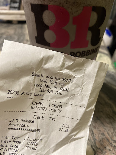I ordered two novelty ice cream items. Both ready on time, looked great, kids loved them. BR ice cream, to my mind, is not cheap, but the options and variety felt endless. The young man taking my order offered several good suggestions, options that made the "cakes" much more fun and interesting, without adding on to the cost. They are quite clearly here to serve, let me know that if their hours would not work for my pick up they were more than willing to work out whatever might be needed. This shop has the clear feeling of a franchise that has not lost sight of the fact that it is "local," here to serve more as a mom'n'pop store than a chain. I look forward to our regular...