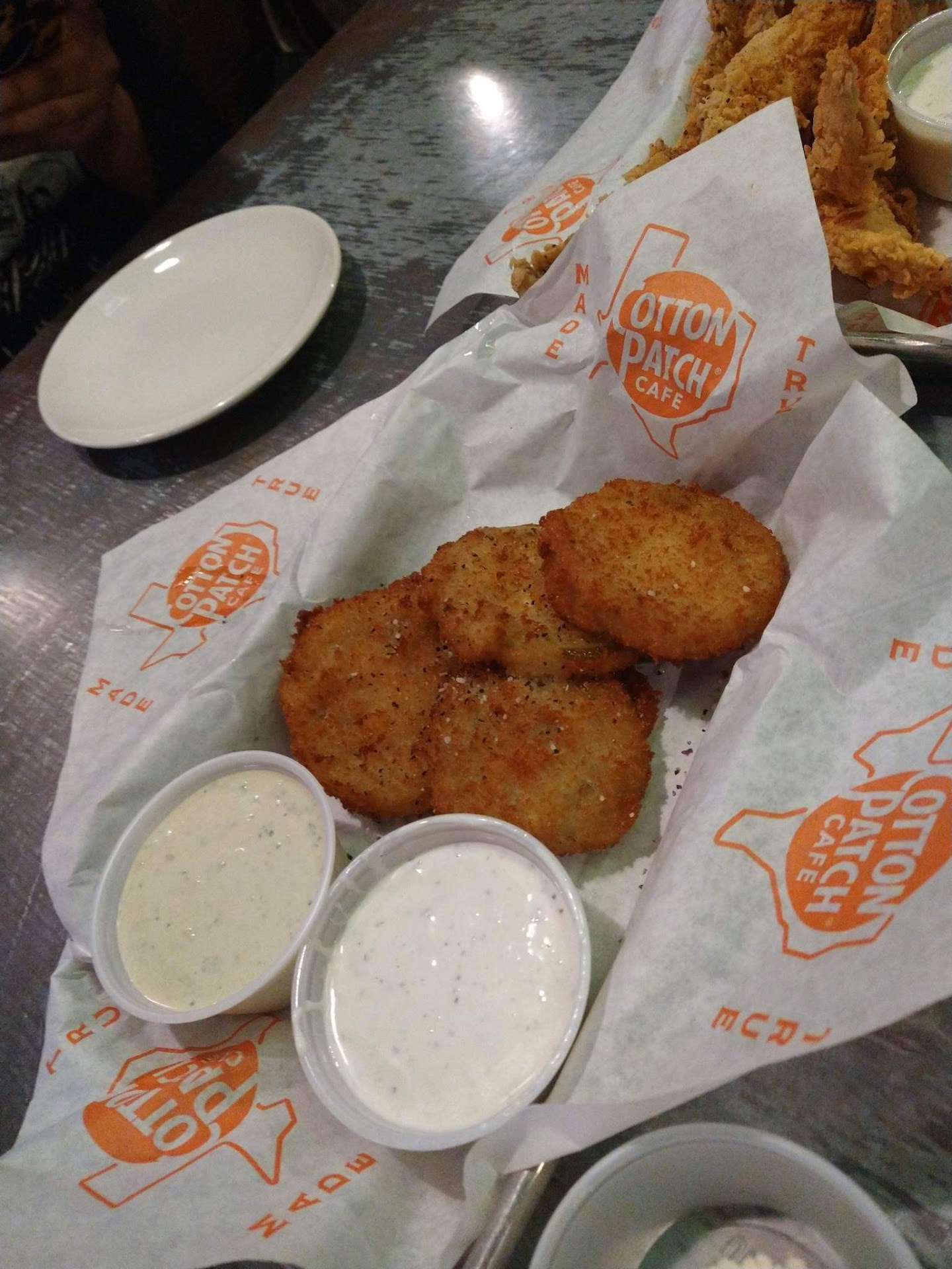 Veterans day...where to go eat when you are new to Texas? My kids told us about the Cotton Patch Cafe, my wife, aka "the boss" and I decide to check it out. From Carthage we drive to Longview where we are greeted with a packed front parking lot, luckily there is more parking in the rear. We walk in and are told to wait 10-15 minutes. Once seated, Tiffany immediately swings by introduces herself as our waitress and takes our drink orders; she is friendly, knowledgeable, and very easy to talk with. The boss had a Dr Pepper and I had an unsweetened tea with lemon. The drinks came to the table ice cold, but they were out of straws, this is a problem for the boss, I try to save the day by checking the truck...no luck. We ordered the brisket queso appetizer, which was delicious and served at the correct temperature. The chips were warm and the salsa was not to my liking. I was provided an option of 2 meals for veterans day, chicken fried steak or chicken fried chicken, each served with my choice of two sides. I ordered the chicken fried steak, garlic mashed potatoes and corn. We also ordered a $6 meatloaf meal with French fries and an additional side of mac n cheese for $3. We were provided tasty warm rolls and butter. When the food arrived the fries were still warm, but just barely. The chicken fried steak had a crisp coating which held up even after being slathered in white gravy. The garlic mashed potatoes were good, the corn seemed like it was warmed from frozen, but it was good enough. The meatloaf didn't seem balanced enough for the boss, it tasted of bell pepper; I liked the meatloaf. The macaroni and cheese was nothing special. We ordered two deserts the chocolate cake with ice cream and strawberries and the white looking butter cake something or other with carmel sauce. Each were wonderful. All said and done it was a huge quantity of food for a great price. The stars of lunch were the chicken fried steak, rolls, cakes and Tiffany. The service was great and the food was good enough to go back. I spoke with Ashley the Assistant Manager and told her how Tiffany made the...
