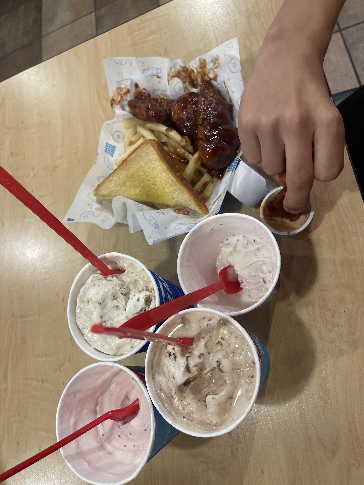 Read moreDon't order food maybe the ice cream is good but the food was terrible cold onion rings and cold burger cheese wasn't even melted at all chicken was cold . I almost canceled my order because when I went for ice for my drink there wasn't any they didn't have other items I wanted either I had to settle for what we ordered but no ice that was it I yelled out" no ice cancel my order " they magically found ice then we ate our cold meal. Just plain yuck 🤮 stay away
