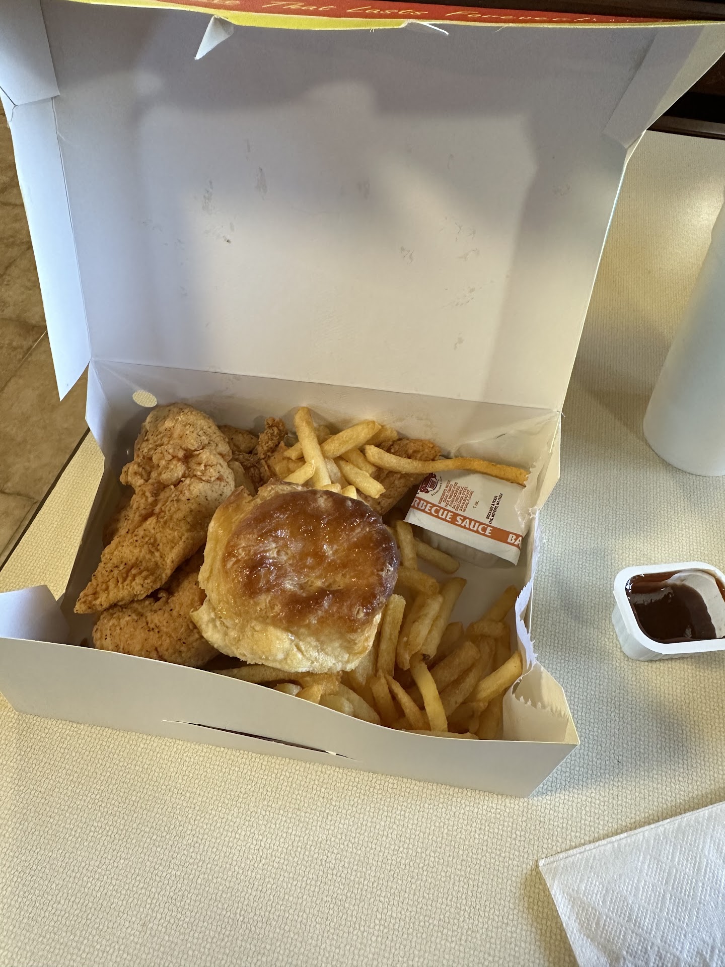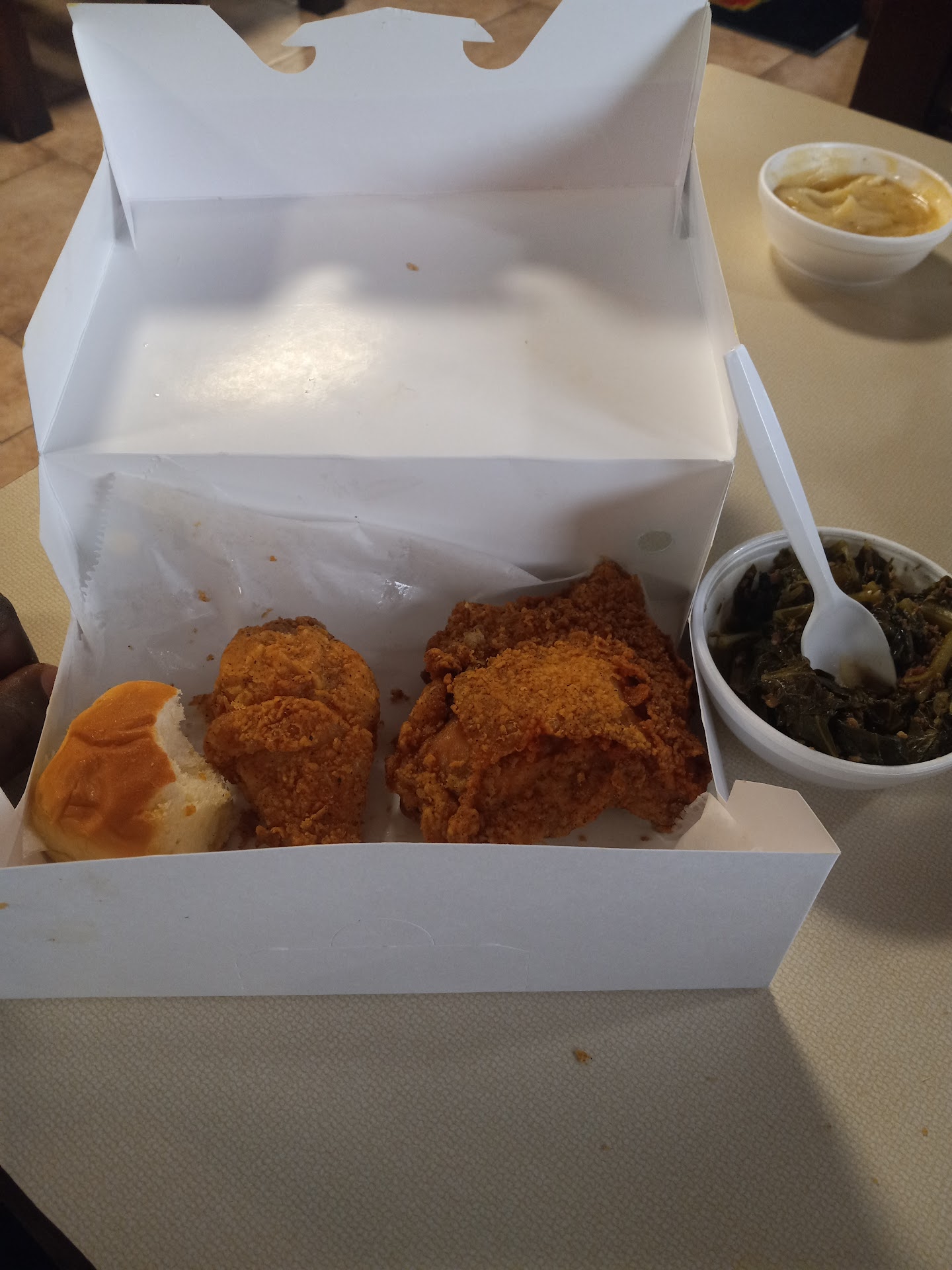 Chicken tender combo- They use seasoned flour but the chicken wasn’t just something to admire. This is something I would’ve asked to let the chicken stay in a little longer and bring your own seasonings. The tenders are huge and it reminds me of the chicken breast you get from Walmart, cut them and season them with flour. If that’s what you’re looking for then this is your place Fries- Thin cut baby fries that you wish was a little more firm. Sweet potato pie- The biggest disappointment and I love SPP but the crust was burnt and looked like it’s been out...