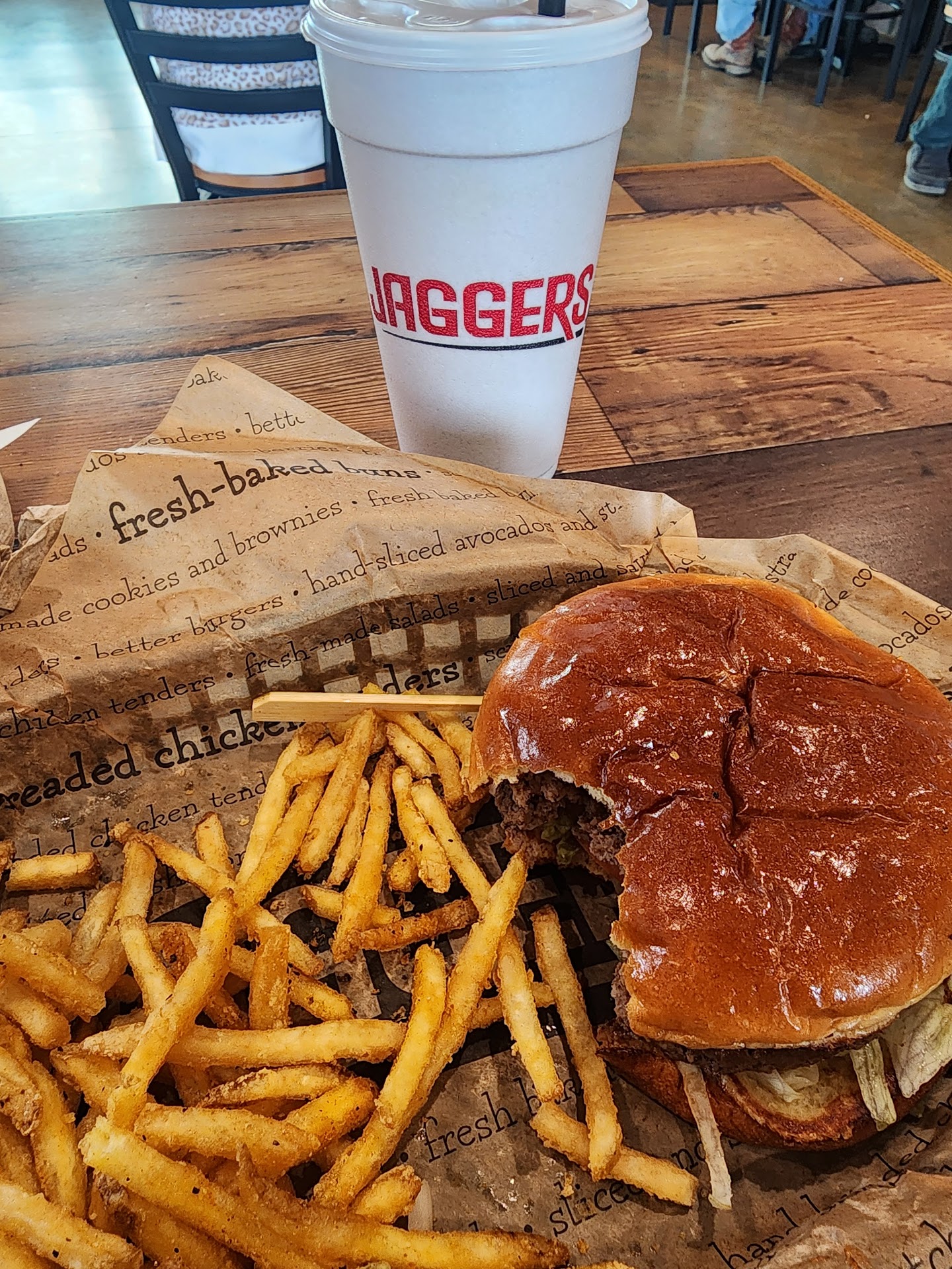 Read moreI'd give it a hard 3.5 if I could with an "A" for effort. The staff is new and trying really hard. The person who reviewed earlier and said the fries were too salty and the burger was too greasy is dead on right. The fries are shoestring style so they get cold quickly. I do not think the burger was nearly as good as a Five Guys burger (sure do miss those flexible toppings), though the pricing and the size are about the same. Burger prices start at $8.29 and go up from there. It was ok but I'm not paying $15 for a hamburger meal unless they improve. Seriously, I live less than a 1/2 mile away and my burger was soaked with grease before I got home; these guys need to learn how to scrape the grill before adding more patties. Contributing to atmosphere score of 3... the parking lot is way too small for a busy restaurant. The hospital staff parks their cars right behind the restaurant and busses employees to work so it's always full. Between double-sided parking in the actual restaurant parking lot, there is only enough space for one car to drive thru. It's best to come in from the back to the drive thru lanes. If you drive a larger truck and intend on eating in the dining room, park on the drive thru side and make the walk - car spaces are small...