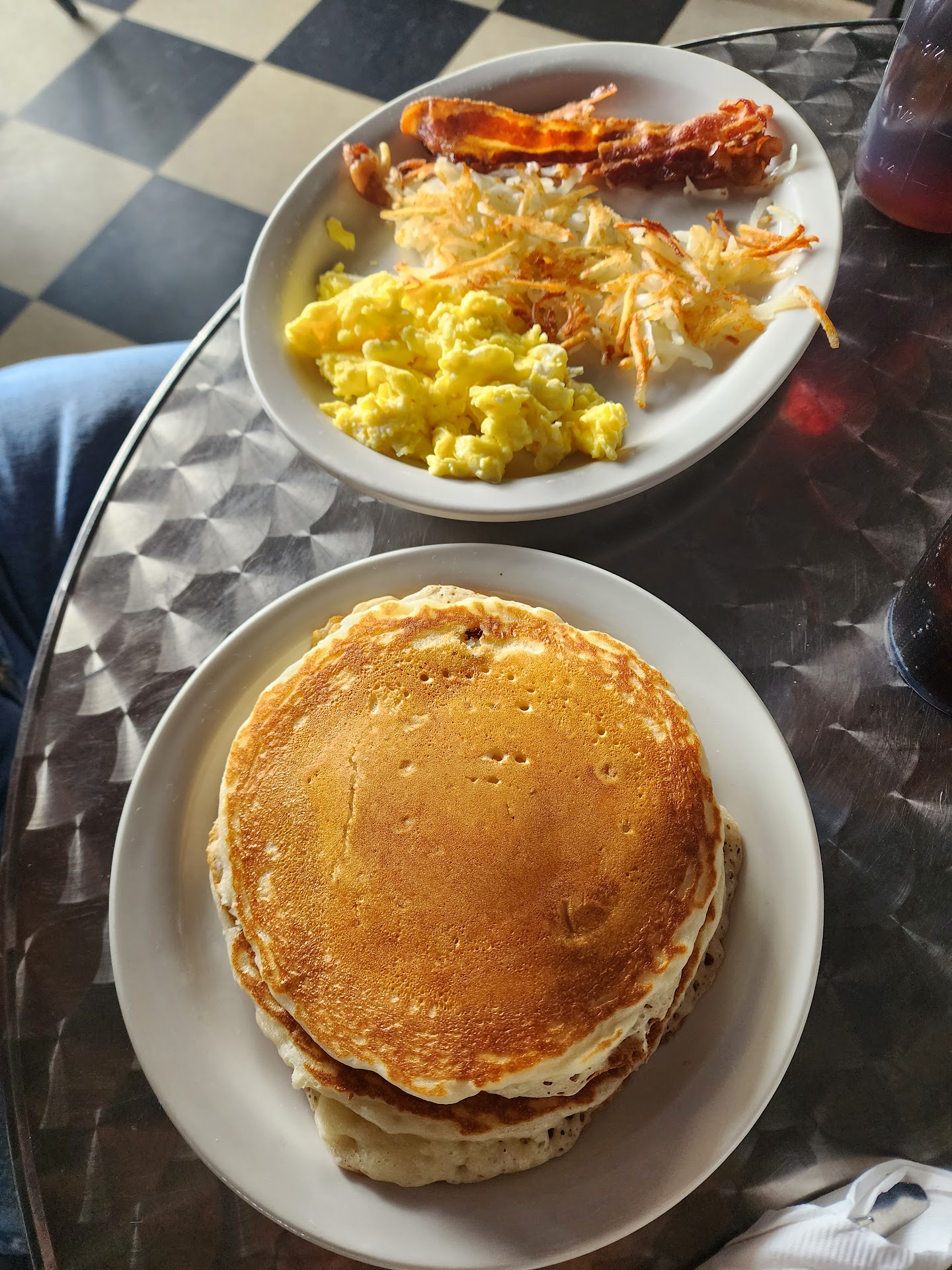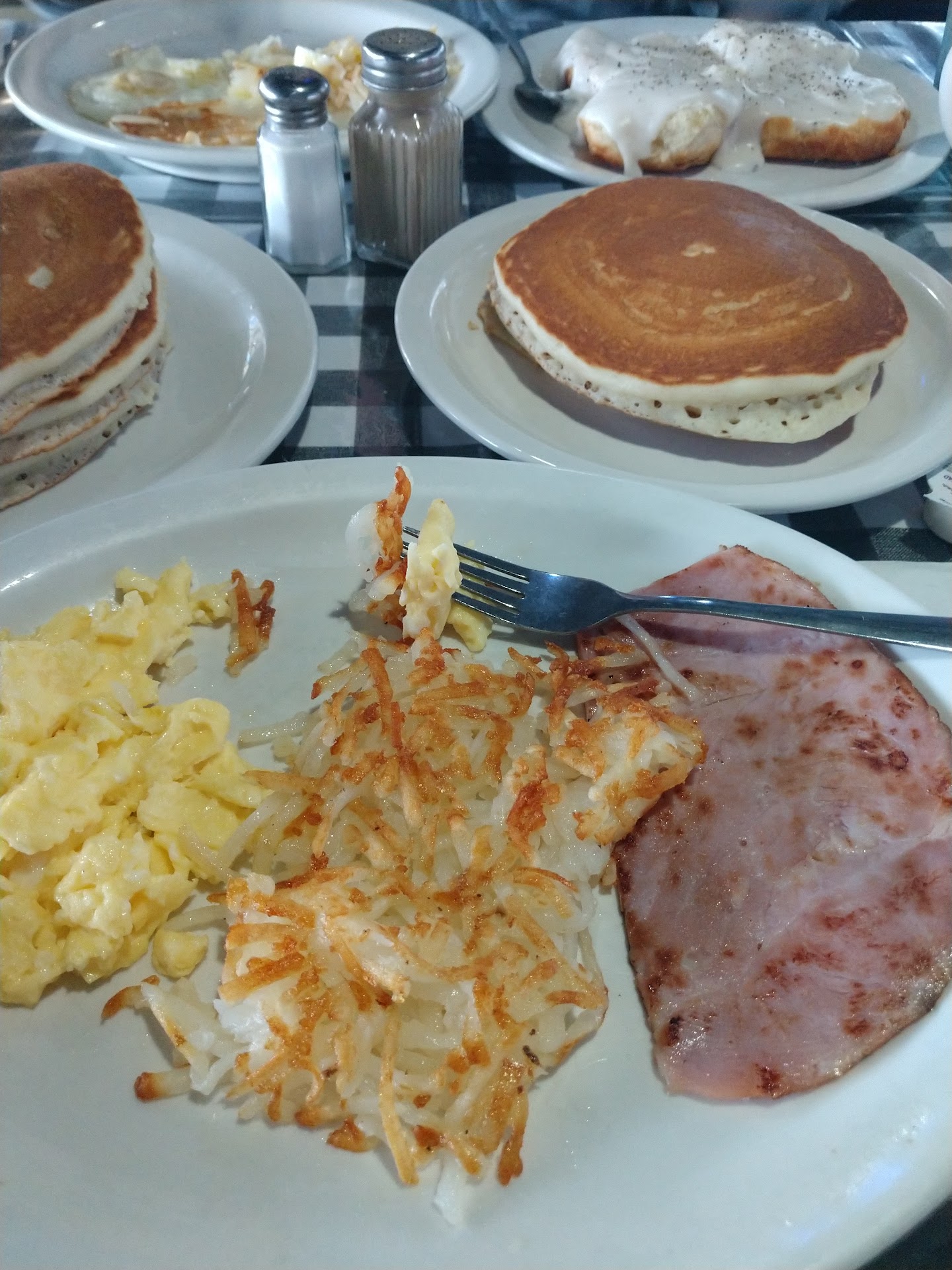 my grandpa got fluffy, delicious pancakes that have been his go-to order for years. I stole bites of biscuits from my sister but wasn't brave enough to sneak any pancakes - but I trust they were delicious because he's been getting them for years, and because he ate the whole plate faster than I finished my meal.