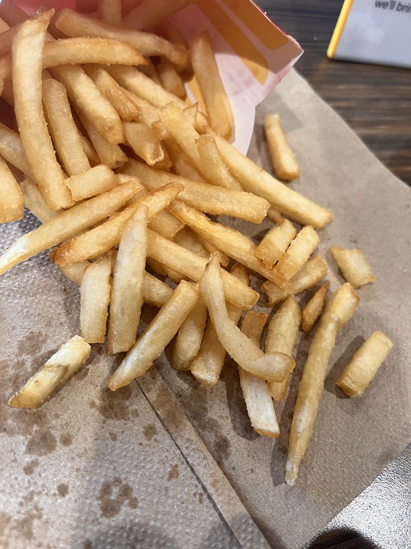 Read moreThis particular experience was horrible. First I made a mobile order and was in my car spot waiting. One worker comes out and says frap machine down and what would I like instead. I said just take it off.. from this moment 2 tea's, 2 cheese burgers and 2 chicken sandwiches took almost 20 minutes. Then another worker finally did bring this but only brought 1 tea .. so.she went back for.another saying the company is to send someone that can fix frap machine and to call see if it working BEFORE making the online order. Ok well I can't always just make a call but I just agreed. My first burger was promising until I bit into a cooled off burger. Not me being picky but you can tell it sat in that back the best part of 20 mins to cool off that much. Update … has gotten worse !!!! Not busy and still got stale fries over salted meat was disgusting and the service isn’t nice anymore … this time will reach out to corp cause they are more worried about their “times” than the customer I refuse to finish the meal cause I can’t stand it … but calling them is a waste of time cause they just ask if you want to bring it back I mean I spent time gas and money and can’t get an apology … just excuses …