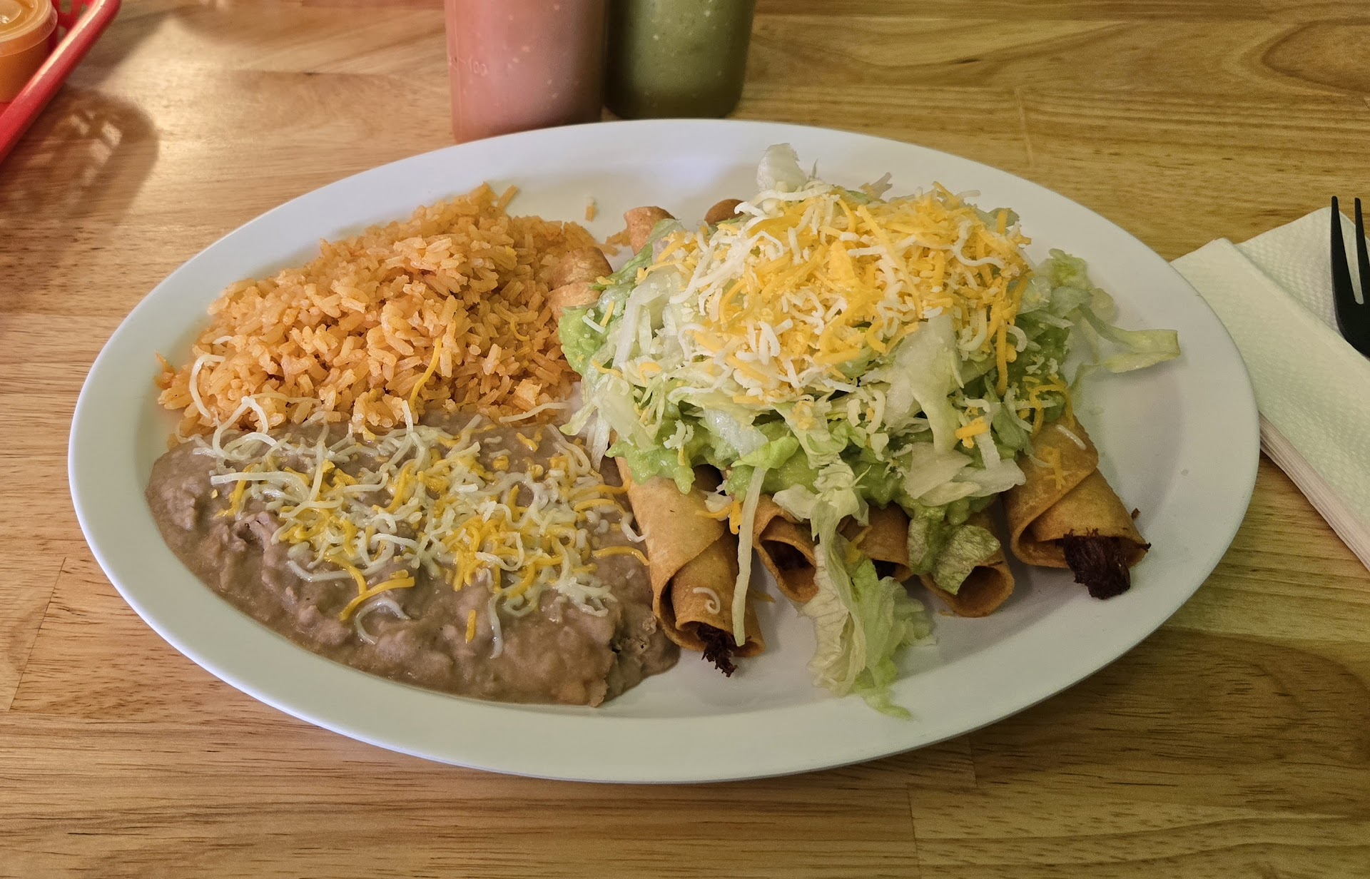 Read moreThis place is great! I have a really hard time trying new places but my wife recommended this place so we tried it tonight and it did not disappoint! I immediately was very pleased to see how wide and open they have managed to make the seating area compared to the restaurant that used to be here and the decorations are great. I ordered the steak and shrimp combination burrito with no sour cream and it was really good however it is definitely a little on the saucy side, there’s nothing wrong with this but just something to note. I ordered the combo and I am just now realizing I did get my drink but I did not get my chips and salsa that came with my meal. I also ordered the 3 rolled chicken tacos with guacamole and they were really good but slightly crispy and I did have to spit some of the last pieces into my napkin. My wife ordered the chicken quesadilla and they actually gave her this chicken quesadilla/burrito mix thing but she liked it anyways and was happy with the taste and size of her meal. We will definitely be back though as long as we make sure to double check they gave us what we actually ordered and everything...