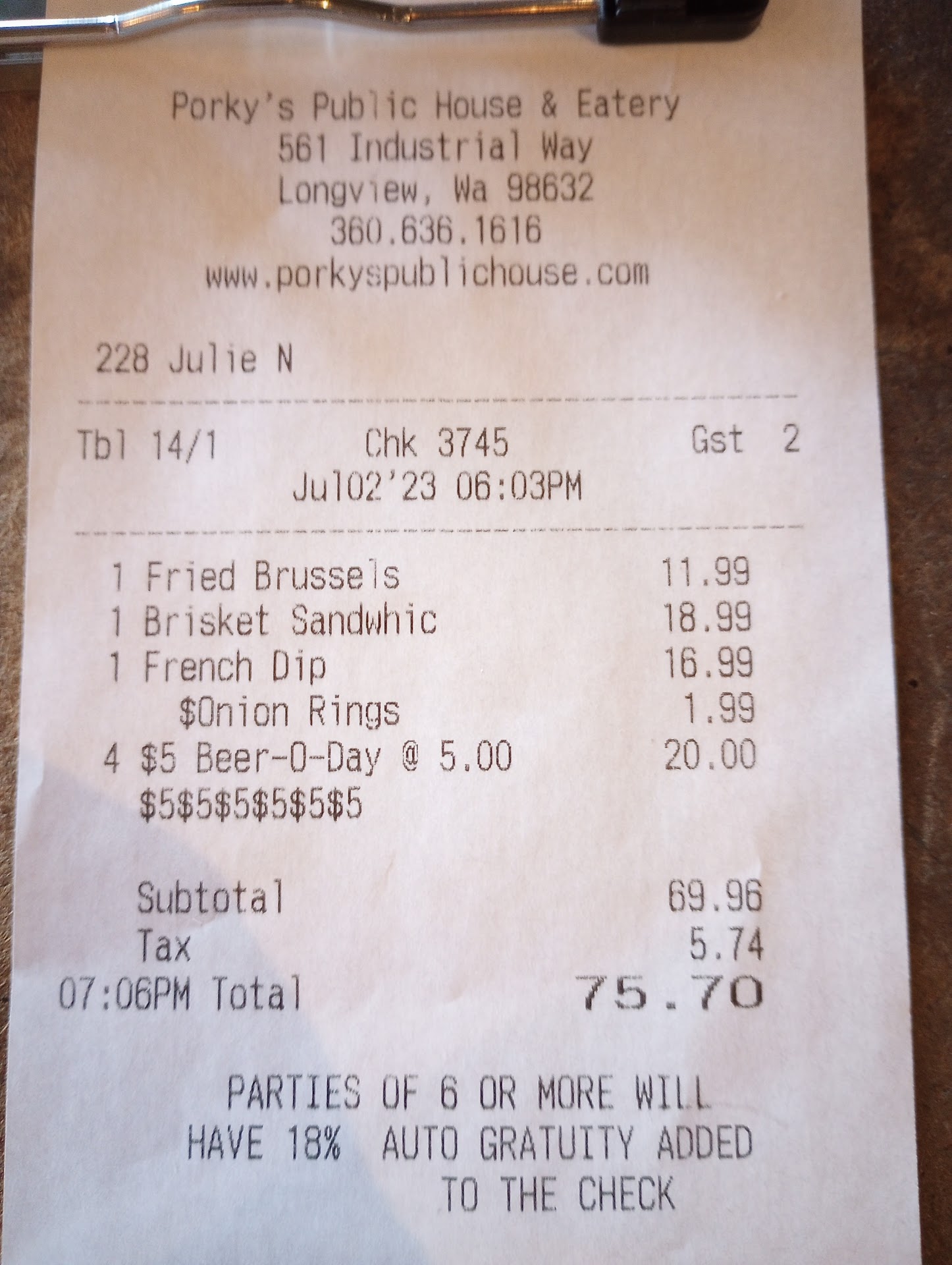 Thanks, Porkyâs, for treating a frequent visitor (and his group)...