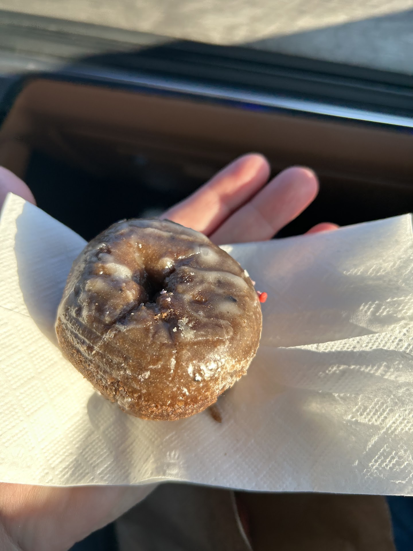 We placed our order. I got an apple fritter, my son got a sprinkle donut, and his friend got a cinnamon twist. When our order was given to us, we had a plain cake donut in place of the sprinkle one. I brought it up to exchange with no issues.