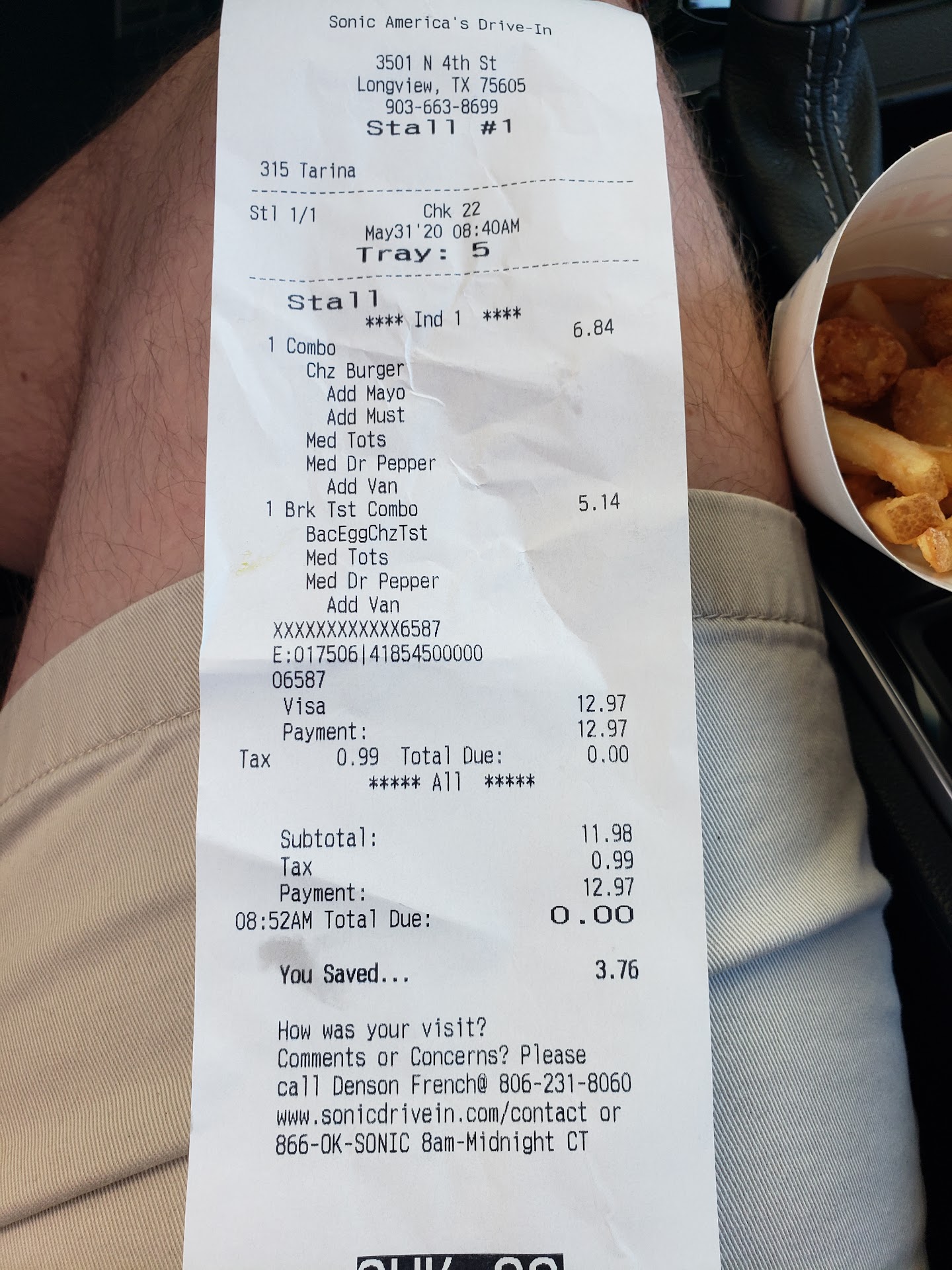 We visited around 4pm on a Saturday. The place is mostly empty. We go through the drive thru. We had one truck in front of us. It took 15 minutes just to get to the ordering speaker. We ordered 2 quarter pound double cheese burgers and 2 coka-colas. We waited another 10 minutes for someone to bring our order to the window. We paid and were given our food and two drinks. We pull out of the drive thru when we realise we were not given a receipt. So we start to pull around to park. I open a burger while the driver is parking. It is refrigerator cold. Both the meat and the cheese. Both burgers are that way. I went inside to talk with someone about it. After all you pay for a hot burger you want a hot burger. And you always should get a receipt. I explained the issues and a lady starts to go about fixing them. I look out of the door and here comes my sister. I open the door and she hands me a drink. I ask why, she said 'they are not even soft drinks, its tea. One is sweet and one is unsweet'. By this point I am getting upset. NOT ONE THING ON THE ENTIRE ORDER IS CORRECT! Tea isnt even in the same machine as soft drinks. And for it to me two different kinds of tea just makes it seem premeditated. Then the girl who helped us at the window says "why are you complaining, at least you got drinks'. What? Really? Corporate management needs to clean house and start over. Almost everyone in this store is giving me attitude because they couldnt get a simple order correct. Not even one item of the order. There was only one helpful person in this place. I wish I could have gotten her name. But it was a caucasian looking young lady with wavy hair. She stepped up and tried to get things fixed. Now I am not saying things were fixed. Because unfortunately they were not. I was given a bag with my order and two Coca-Colas. I assumed the order was fixed, afterall I had just waited another 10 minutes for it. Got in my car and started to pull away. As we merged into traffic we opened our remade order. It was room temp. Not refrigerator cold. But still not warm enough to even wilt the cheese. But this time I did get a receipt. I have given up on fixing this order. I just called the corporate number on the receipt. I explained what had went on. The customer service lady says a regional and a area manager will be calling me back about the issues. I guess we will see. But it really feels like Sonic doesnt give a care about this issue. I dont know if it is lack of customer service, lack of quality control or maybe just because my order of less than $10 isnt enough for them to care. But in my area I spend more than $45 twice a week at Sonic. And that adds up. I just might be taking my business elsewhere since obviously customers dont seem to matter. So in short DONT visit this store unless you like really long waits for...