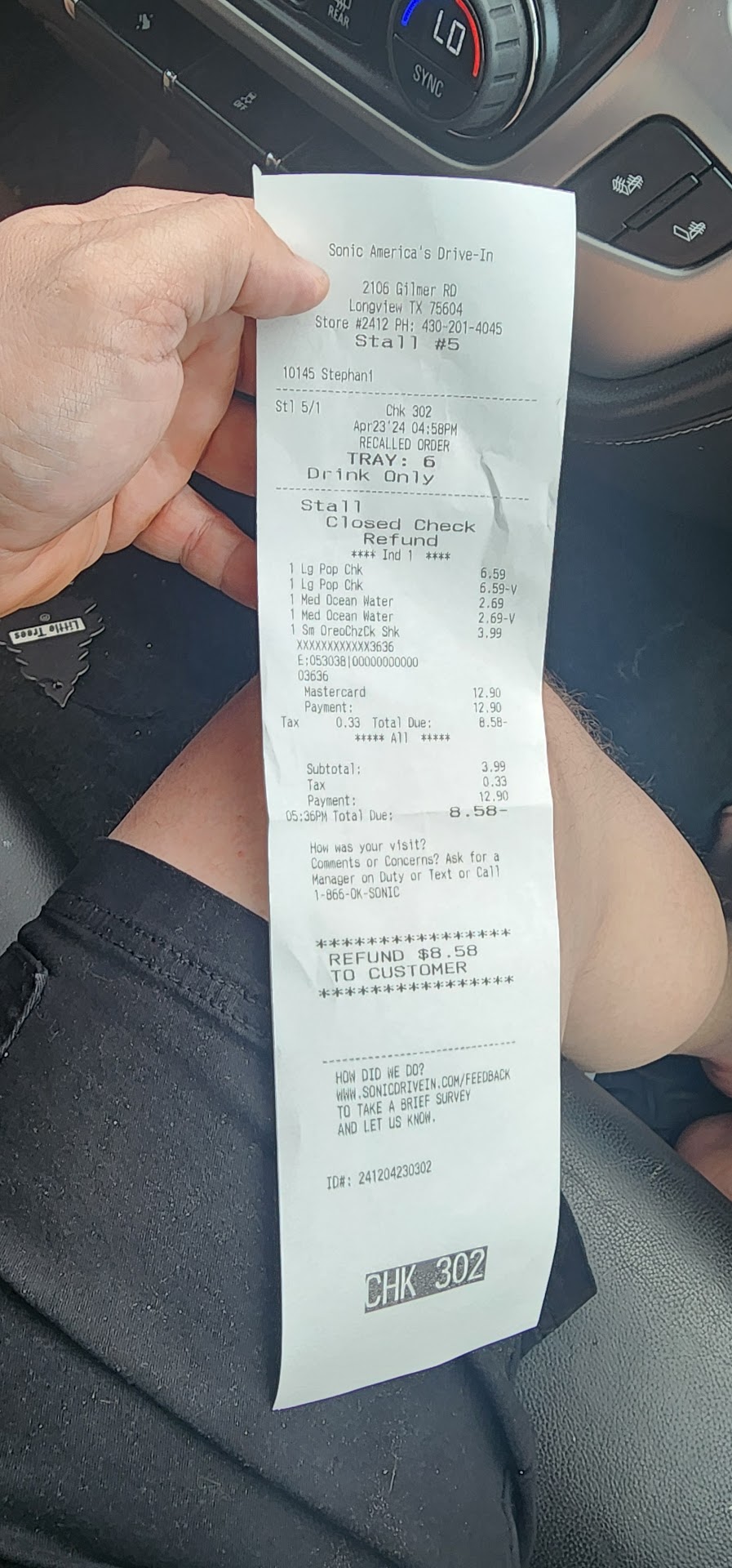 Read moreI am noticing a persistent request to keep my change at this location. If I get a cup of ice for $.39 in the drive-through and you ask me if I want any ridiculous change. This continues to be a request from the sonics drive-ins. It is different when a carhop brings me an order. But when I am in the drive-through, are you serious?! I realize that many of these people are working on minimum wage, and it depends on the company that they are working for asked to how much they are getting paid an hour. But stop asking me for my change in the drive-through. That is just plain idiotic. you are actually asking me for $.71 on a $.39 order. Please tell me how that makes sense. We are all out here struggling and I feel that it is unfair for anyone to try to pray on my compassion. Because I used to work at sonics, I have the utmost respect for the carhops so I tip them accordingly. during my time working at sonics, I never asked anyone to keep my change in the...
