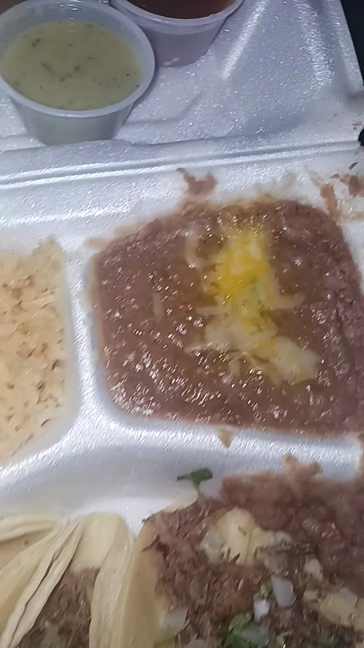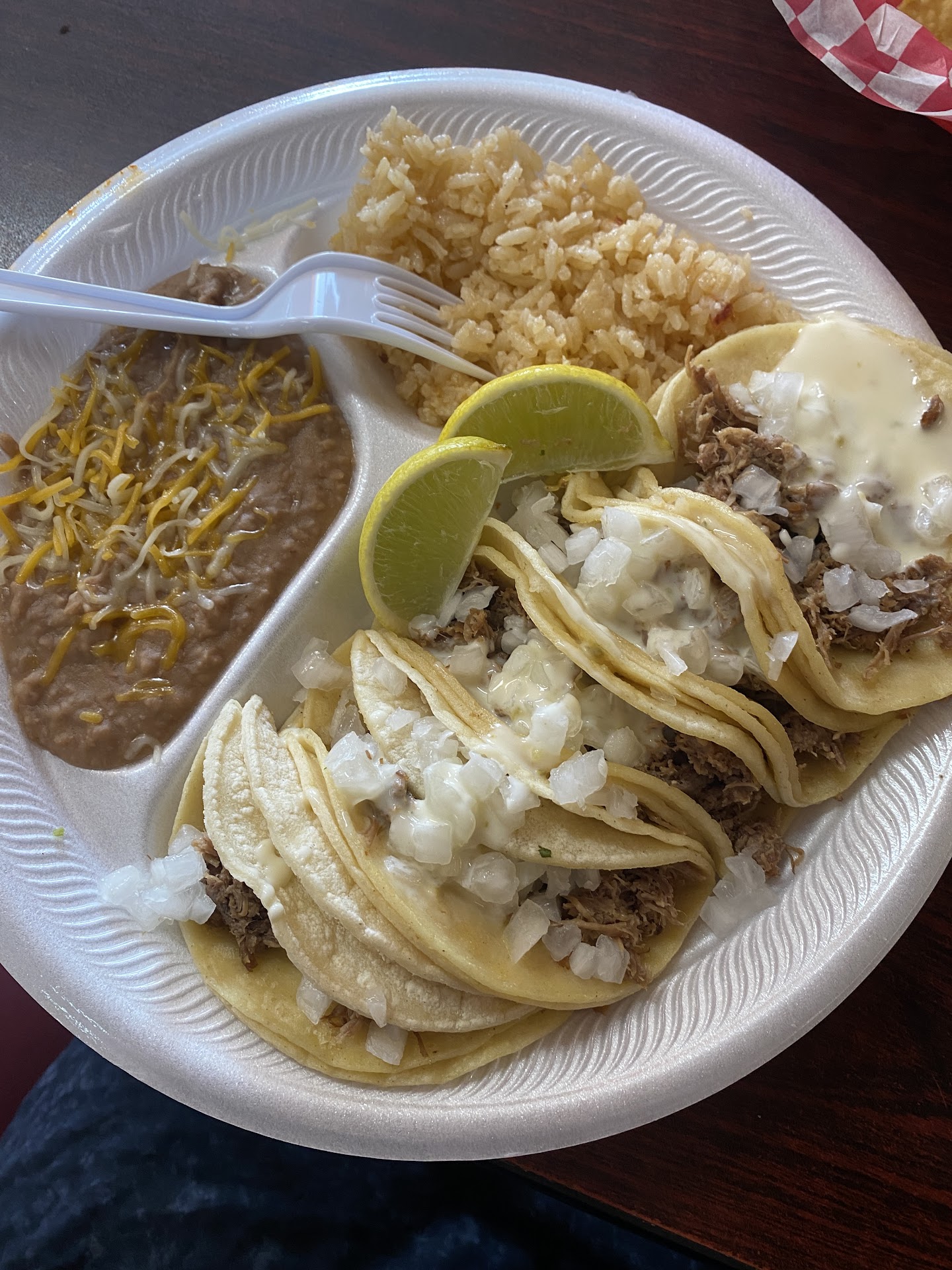 The tacos were delightful. The meat was tender and flavorful, the onions added a nice crunch, and the queso and lemon added an extra punch of flavor. The beans and rice were creamy and smooth.