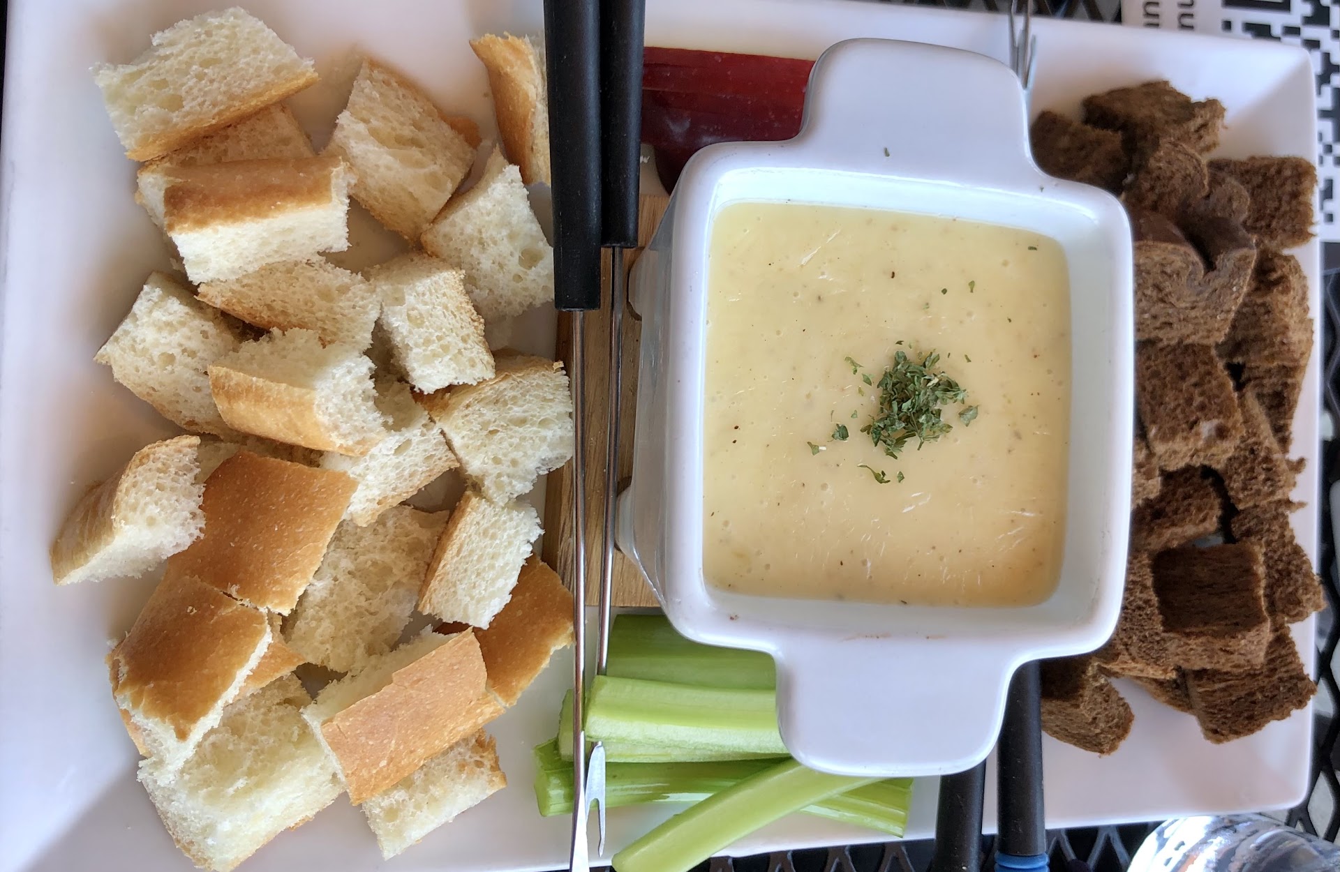 They make so many plates of fondue that the cheese-absorbing bread and apple and celery seems to be rather cheap which is a shame, because the cheese they use is so good. Their desserts aren't worth what they charge for them, and you might be able to make many of them at home. But they are still tasty. Haven't tried any of the rest of the menu, but I hear it is good, but I also heard the fondue here was good, so YMMV.