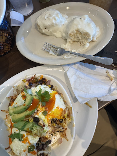 I ordered the Chicken skillet which came with grilled chicken, black beans, bell peppers, avacado, cilantro, which sat on top of hashbrowns and over medium eggs. It was very tasteful, the chicken was perfectly seasoned (I’m not much of a fan of salty foods) for me, and the mix of the ingredients made me happy and hungrier every bite!