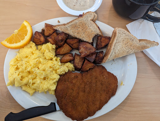 Read more2nd time going. 1st time was AMAZING. Maybe like a year ago. So good. I remember having an omelet. And the pancakes were good.Clean and homey feeling. Waiter was awesome and even the owner came out to greet us. Sooo nice. But this 2nd time. Nothing to brag about. I was ready to go eat somewhere else. Our waiter was a little off today. Super nice but maybe distracted. Had to call him over and ask for everything. Can we have coffee, can we get our silverware, can we have napkins. And I HATE COMPLAINING about food but it's more my opinion. Soooo!!! The stuffed French toast I ordered had an almond flavor. I'm guessing thats their specialty but nah!! I love almond flavoring but I like my traditional Cinnamon French toast. Especially when its not specified that your changing the flavor. Nothing cinnamon about them. Then I specifically asked was the cream cheese that it was stuffed with sweetened and he said yes. But nope it was just a thick layer of CC and slices of banana. Again, my opinion, i love me some CC but my expectations was some soften sweetened CC in the middle with banana but Nope not what i got.Then the scrambled eggs came out a little to soft. Couldn't eat them. And those little tumblers they use for creamer made a mess. Should definitely change those. I'm sure it won't be our last time going. I'm hoping to try other things...
