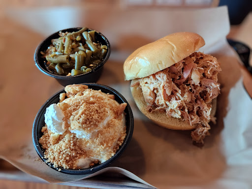 Iāve never eaten here before. Looks real nice inside the service was good really crowded. We sat at a table that we could get because it was so crowded and it is the coldest place. Iāve ever eaten in my life. We sat under an air-conditioning vent that is pointed like directly at the table. My daughter had a jacket on she was freezing to death. It was unbelievably cold in there and Iām pretty tough. Iāve worked outside my whole life, but man it was freezing in there. I ordered turkey and it was the driest turkey Iāve ever had it was. It tasted OK but it was just crazy dry. My daughter had brisket and mac & cheese and fries. The fries. Mac & cheese were good. The brisket was really dry. I was surprised how dry it was. It was sliced brisket. My son had a sandwich that was brisket that was chopped up. He really liked his said it was really good. I got baked beans with brisket and they were just really not very flavorful tasted old and just didnāt really have a whole lot of flavor to them. Also, the cornbread was some of the most underwhelming cornbread Iāve ever eaten Iāve lived in five different southern states Iāve eaten some pretty cornbread and this isnāt in the running. It tasted like jiffy cornbread, but even a little worse than that. This is the chain so I would guess the stuff is that Office Cisco truck more than likely.. That said as crowded as it was and it reviews it has, I guess people like it. I wasnāt impressed at all. I am a veteran. I got a really nice parking spot right by the door, which is kinda nice. And there was nowhere to leave a tip when you pay the bill not that I saw. I didnāt see a tip jar anywhere the kid that was bussing tables Was really diligent and I gave him five bucks and unfortunately he gave it to his boss or manager. He didnāt know what to do with the tip. Iām assuming they donāt tip here what a...