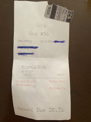 Proof of purchase reciept below to confirm original Cheesesteak pizza and appetizers.