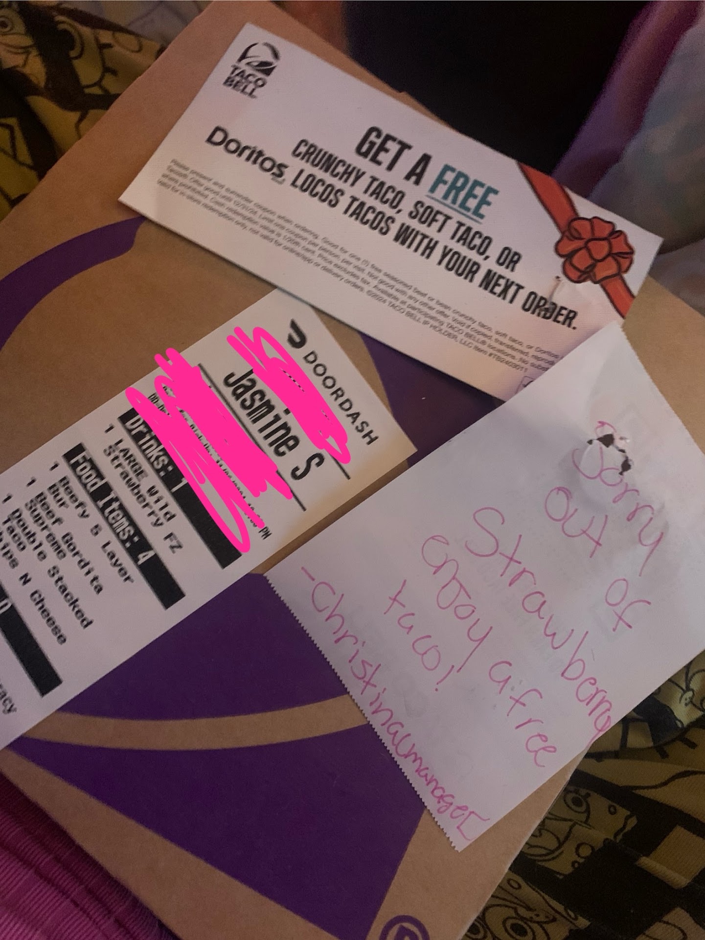 I became very concerned about taco bells. I like the fact that I can eat for a fair price, but buying individual items, it's a too pricey. I gave up on a lot of taco bells and gave in to this one because it's new. Contact and support 1 day regarding the menu showing me a caramel empanada being told that it's discontinued not long ago. They seemed to have updated the menu.I've only had one blown out burrito but finding trash in my box is not acceptable. They ask you many times this and that and you state clearly that you don't want any sauce.The young lady seemed to have been in the way for some reason.Looked like a manager got in the way.I couldn't stop thinking about the fact that i'm waving at her thinking, why are you putting fifty sauces in my bag when I asked for none? And then I was asked again, oh, you don't want any of this sauce.No, I don't next thing.You know, my napkins look like a ball of paper and they kept the sauce. Opened upMy seven dollar box started munching on chips that I had to buy.Because I don't like cinnamon twists.And that seems to be the thing they replaced the chips with.So not only did they not change the name of the box, they wanted to give me something like pork rinds with cinnamon on it.I don't know what those things are.I don't like them. Ate my crunchy taco then started to eat my chicken Chalupa. And realized there was a dirty piece of cellopane plastic under my food. No, one person should ever want to open their burrito. Everything seemed fine.I finished my meal.Although it suddenly looked like trash. The lady looked like a manager.Her teeth were a bit gnarly. She had plastic gloves on the cellophane.In my box or whatever was dirty. I have no way of knowing if those gloves were fresh. But the woman in the window Who suddenly had what seemed like her duties taken over by a shift manager a woman with gloves who appeared out of nowhere. The girl on the window didn't have gloves on at least.I don't think so.This would lead me to believe that it is not necessary.Because she does not handle food or trash. The menus are very bright and sometimes the robot that tries to handle business is...