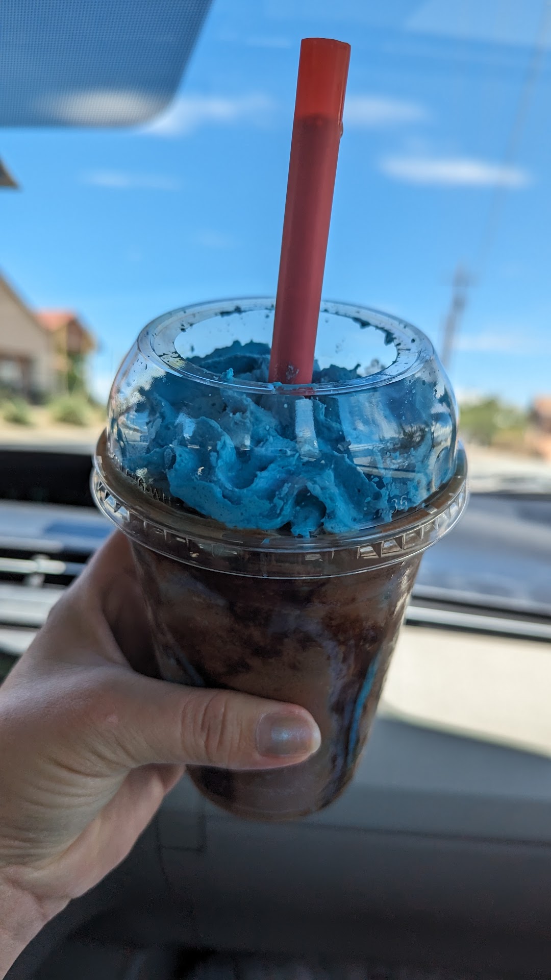 Read moreWe stopped on our way through Lordsburg and were pleased to get coffee from a local business. It is right off the highway and the folks there are very nice --- they even brought our drinks to our car as it was hot outside. I ordered a dark chocolate frappe (pictured here) and it was not too sweet. The blue whipped cream was a surprise but was not overly sweet, and it matches the...