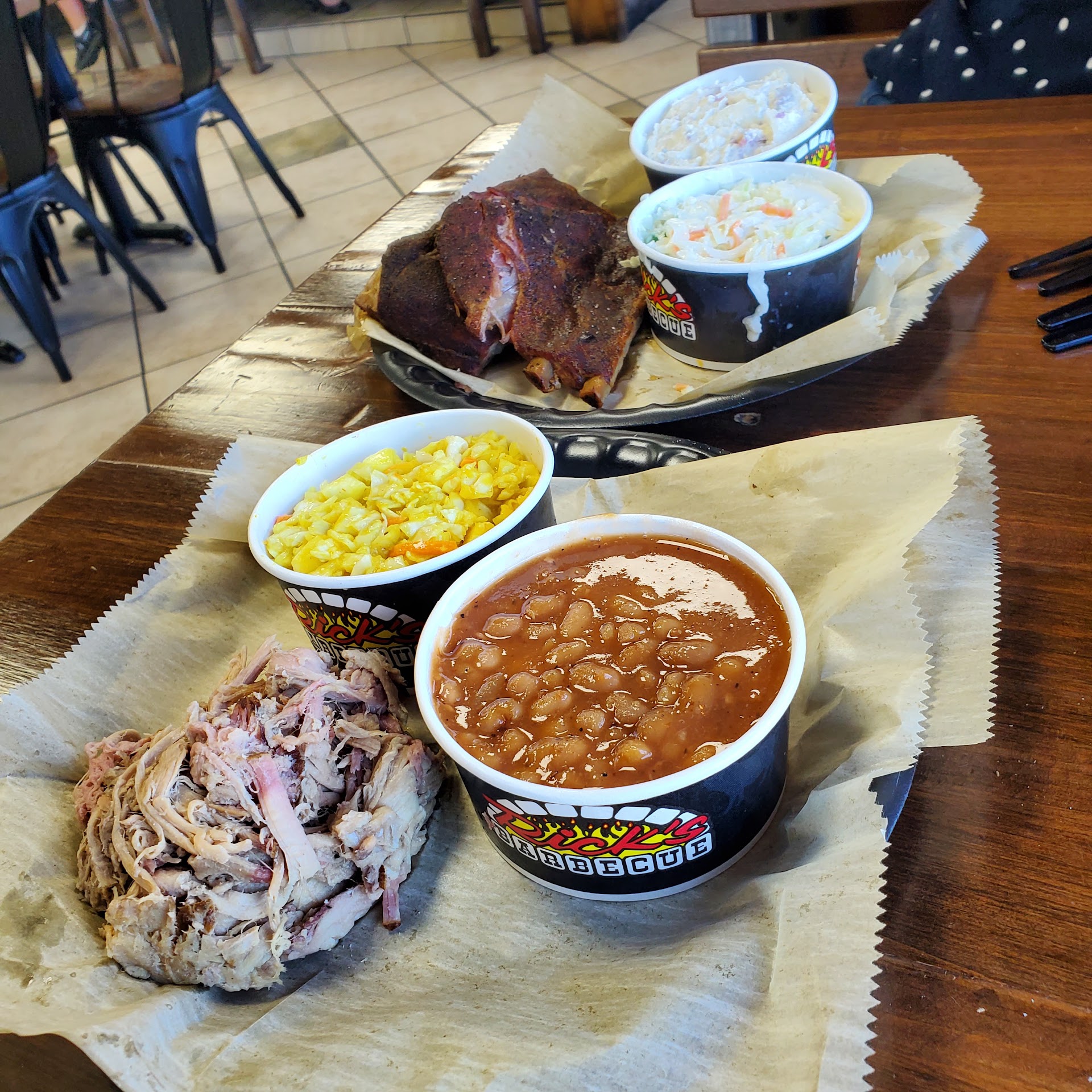 Read moreRick's was recommended by a friend from Lawrenceburg as a must visit while camping at David Crockett State Park. For a Thursday night they were quite busy. I can see why it's a local favorite. The meats we ordered were great, smoked well and not over done. The sides were good / OK. The baked potato salad was tasty. The mustard slaw is different, kinda spicy, it would be great on a hot dog, it almost had a hint of sauerkraut. The portion size was commensurate with the price. The only knock I have is a personal preference; I love baked beans and just want some meat cooked in with them. They were tasty though but not a unique stand out item like the spicy slaw or loaded baked potatoes. Bottom line is if I lived in Lawrenceburg I would be a...