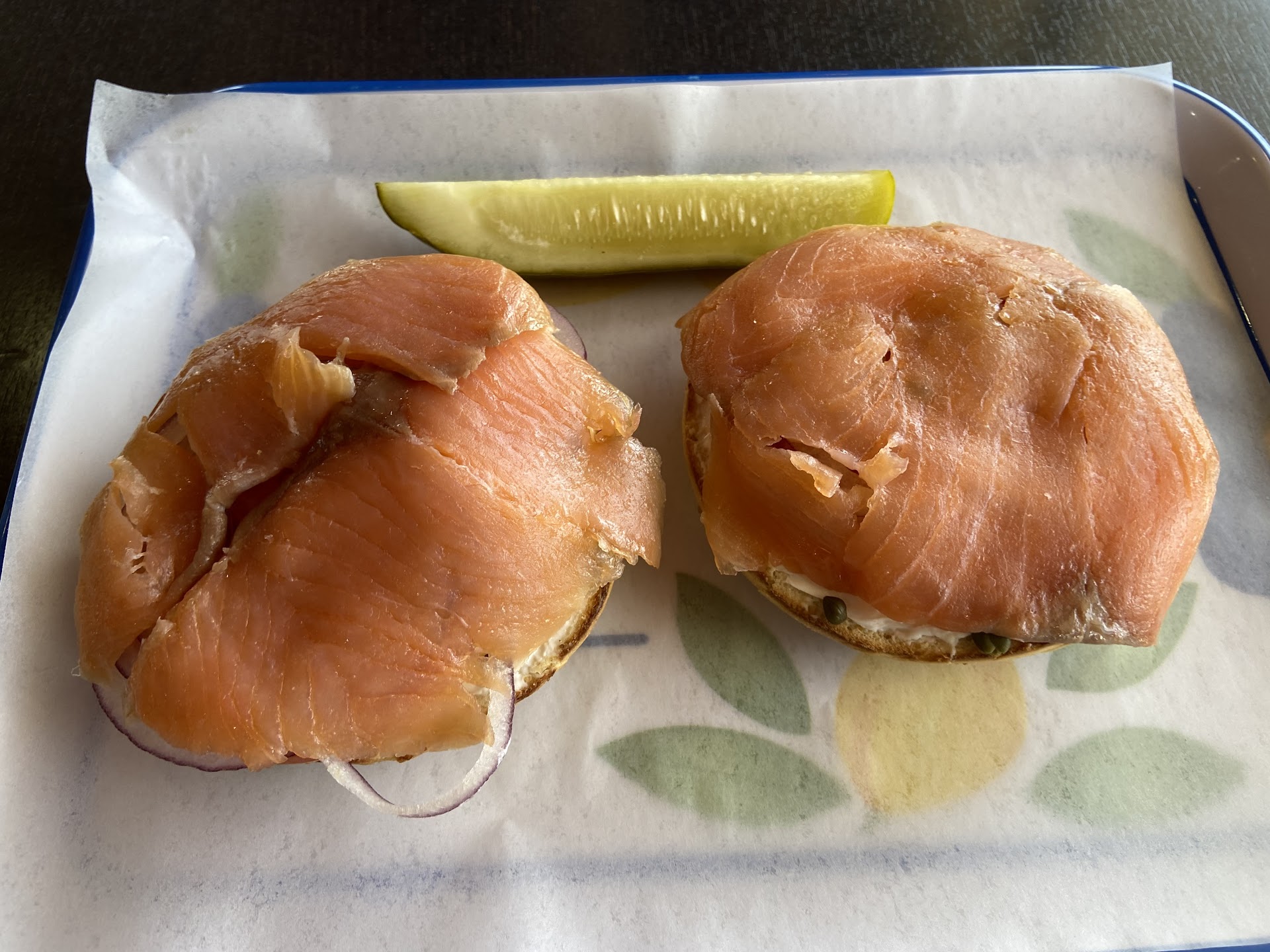 When I visit, I usually stop by here each morning and get the open face toasted bagel with the sliced nova lox. The cream cheese is light and fluffy, and they are very generous with it.