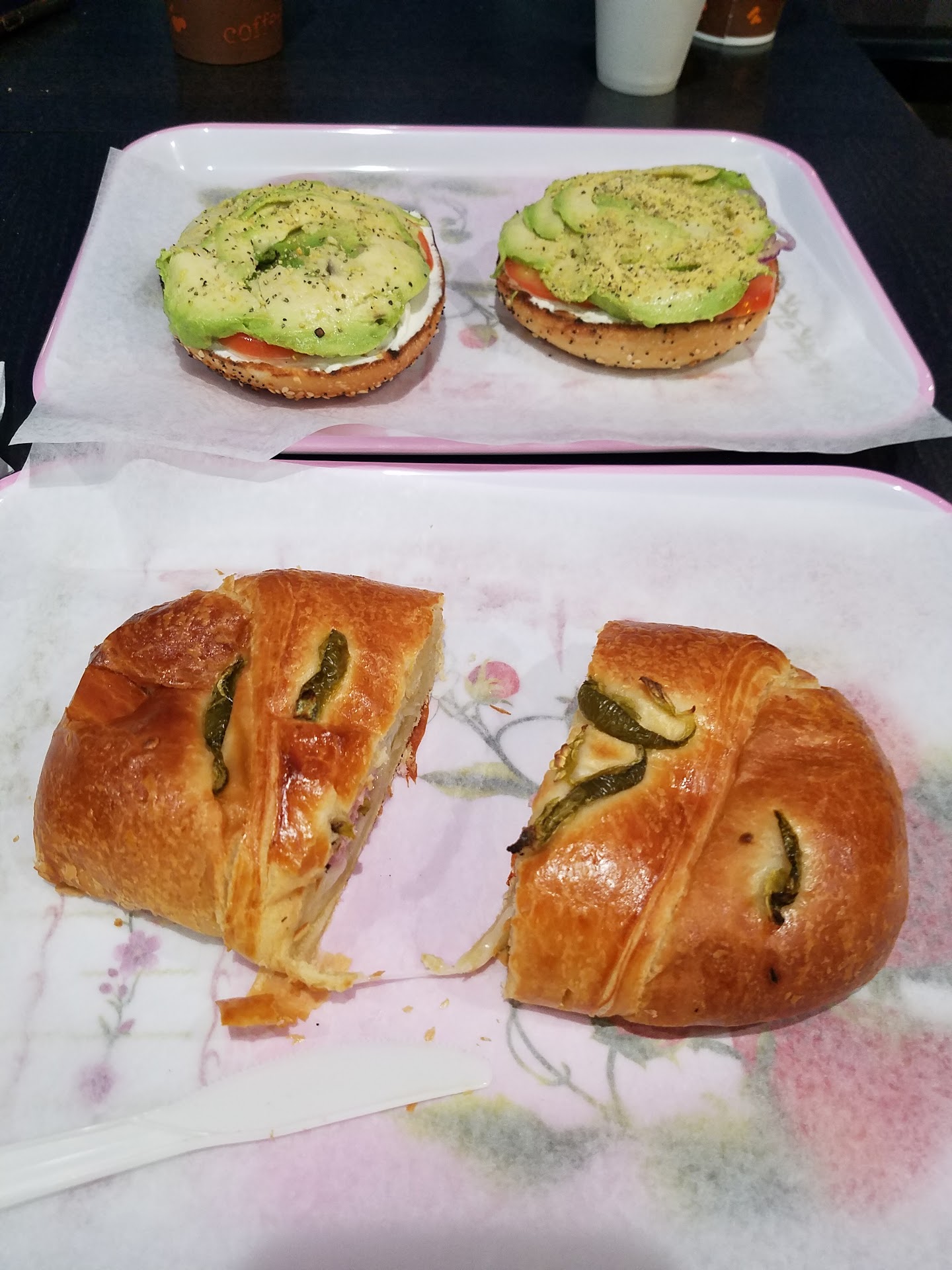 Read moreIf you are up at 0600 with a hankering for a bagel..this is your place! Although I am a carnivore, I was forced to share the #5 Veggie Deluxe, and it was amazing! My contribution was the choice of bagel, and chose The Works (everything) bagel. This of course was a significant contribution as I am significant as well..and stuff like that! Ask for extra onions, and chopped..the thin fine onion rings tend to pull the tomato and Avacado off the bagel and makes a bit of a mess as it it open face (bit tough to cut through fine thin onions with your teeth). Additionally the ham & cheese croissant would have been better if the croissant was not undercooked. Multiple selections of coffee was nice. Will...
