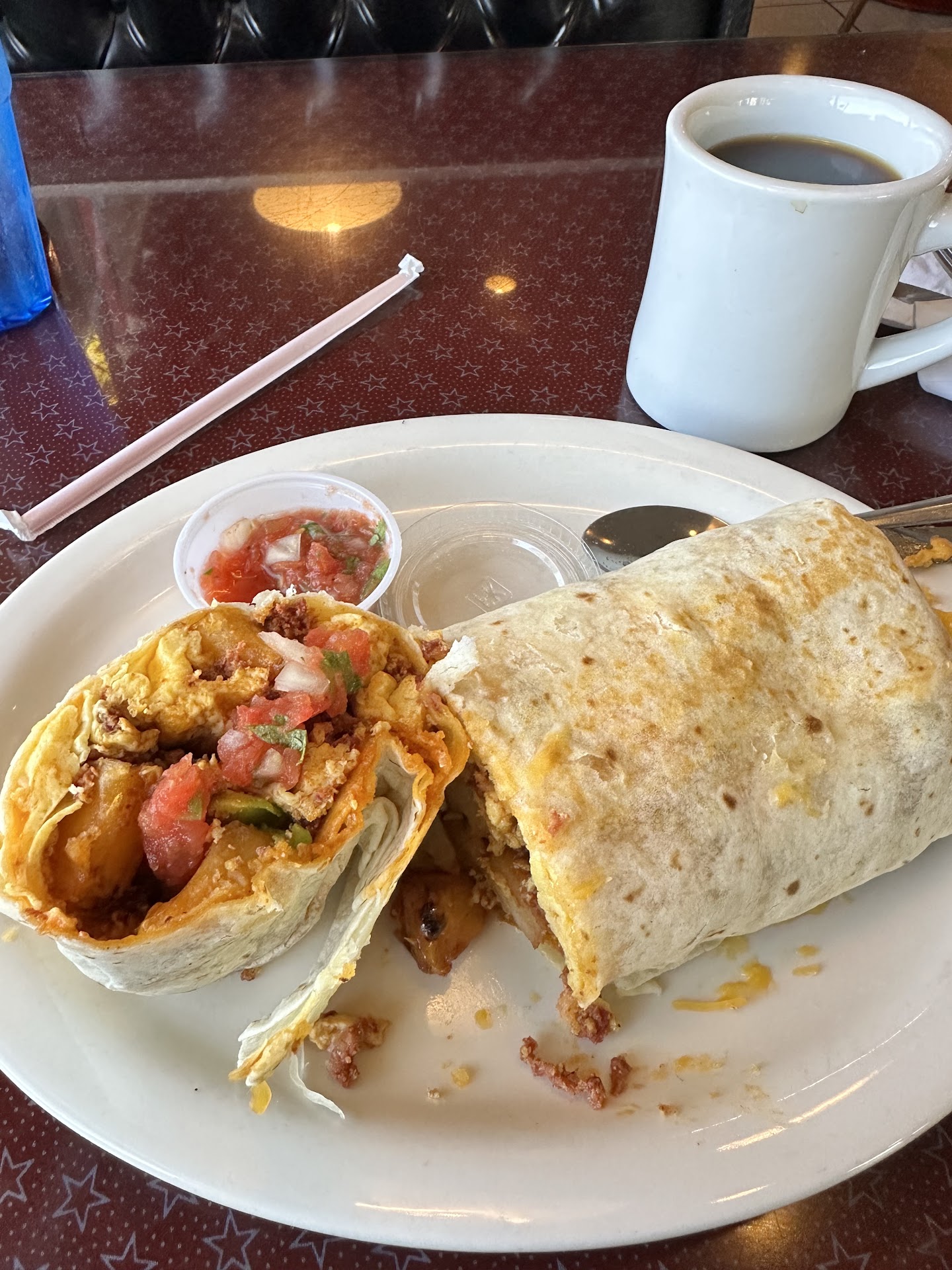 Read moreWe stopped by because of the food reviews and it didn't disappoint. At first it was a bit rough. We got seated quickly and the same man that pointed us to the table stopped by a minute later asking about drink order and we had a question about an item on the menu. He quickly replied he was not the one to answer those questions that our waitress would. She took a few minutes to show up. I did get a coffee and after I had started drinking my wife pointed to a piece of dried food stuck in the handle. I tried to wipe it, but it was pretty caked in, so I let it be and grabbed from the other side. But then the waitress got to us and was friendly and the food portions were huge for a very good price. And the most important thing, it tasted great. All in all we could have had a better start, but the things that happened to us could be one off situations, but if the food is not good or the attention of the waitress is not right, that is hard to fix so I am giving it 5 starts. I would...