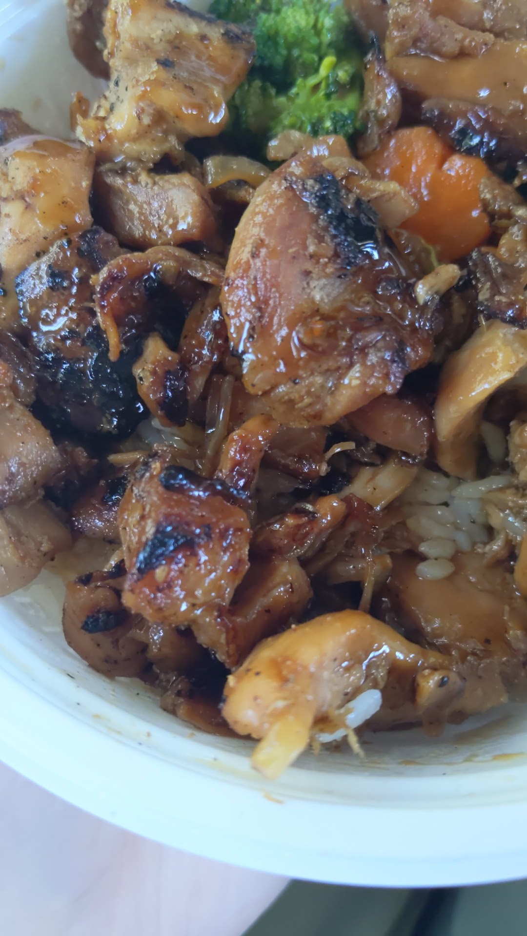 The meat by themselves, the beef being more traditional teriyaki, and the chicken being more Korean infused flavors, really actually didn’t have very much flavor at all. The only flavor was in pouring the very generic teriyaki sauce over the top.