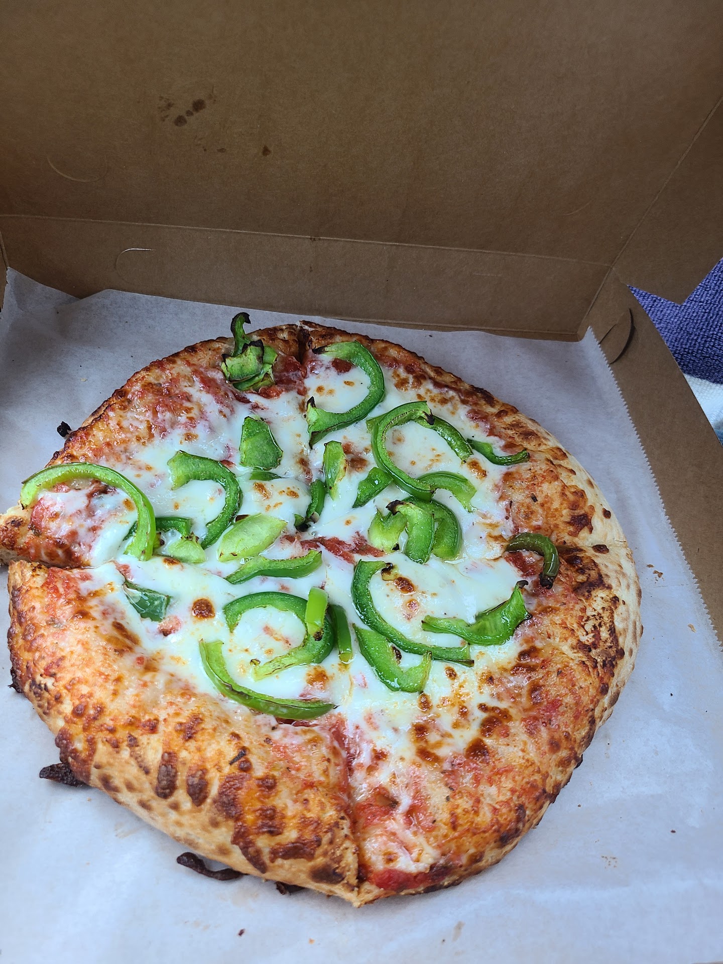 Read moreI ordered a large pizza on October 12, 2024. My entire experience was very poor. First, the two men working here don't greet customer, don't make eye contacts, don't smile. It feels like they want their customers to go away. After pizza is baked, they don't say thank you or goodbye. There is no courtesy to customer! What's also a surprise is I watched them put chicken breasts in a baking sheet next to pizza going through the oven belt. I have never seen any restaurants cook chicken this way. They checked the chicken breast then sent it back to the oven with other pizza for another round. That was really unconventional. I will not be...