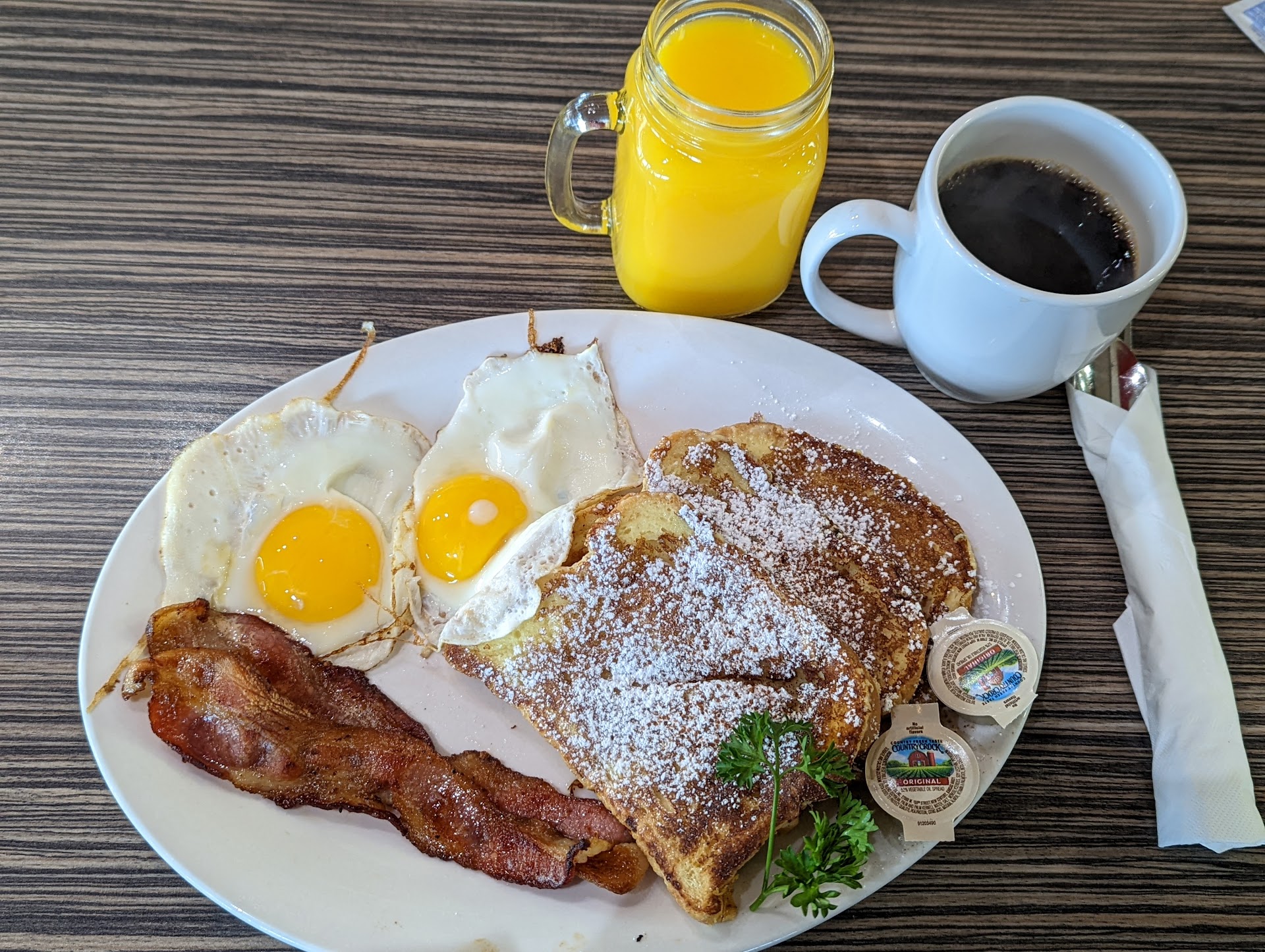 Read moreIts ok place. What got to me this morning was that I was clear on what I wanted- I said Steak and eggs with hash browns and sourdough toast... Then the waitress asked me how I would like my steak.I said medium rare to medium. Then she asked me what kind of potatoes and what kind of toast I wanted.I guess she didn't listen the 1st time. I had asked for Sunnyside up eggs which to me is runny yoke and cooked whites. Food came so quickly that I was a little bit confused... But then i understood when I looked down at the plate... The white on the top of the eggs was raw near the yolks and the steak was raw on inside. I was seated right next to the kitchen so I brought the plate back and asked for the eggs to be cooked more and the steak to be cooked more.I had not touched anything.I had only cut into the steak with a knife. Instead of sliding the steak and eggs back into the grill and cooking the steak and the eggs more, they threw everything away... including the potatoes the toast. I was not sick and I barely breathed on this food. But what made me sick was the waste of untouched food that only needed to be cooked a little more. Each restaurant needs to do what they can to prepare safe food and not waste it as much as possible, in my opinion. Just use common sense. When they brought me a new plate of food , the steak was literally half the size of the 1st one. I appreciate a learning experience here today but probably won't be back... also, as the last time I was here I had to wait 25 min. for a cup of...