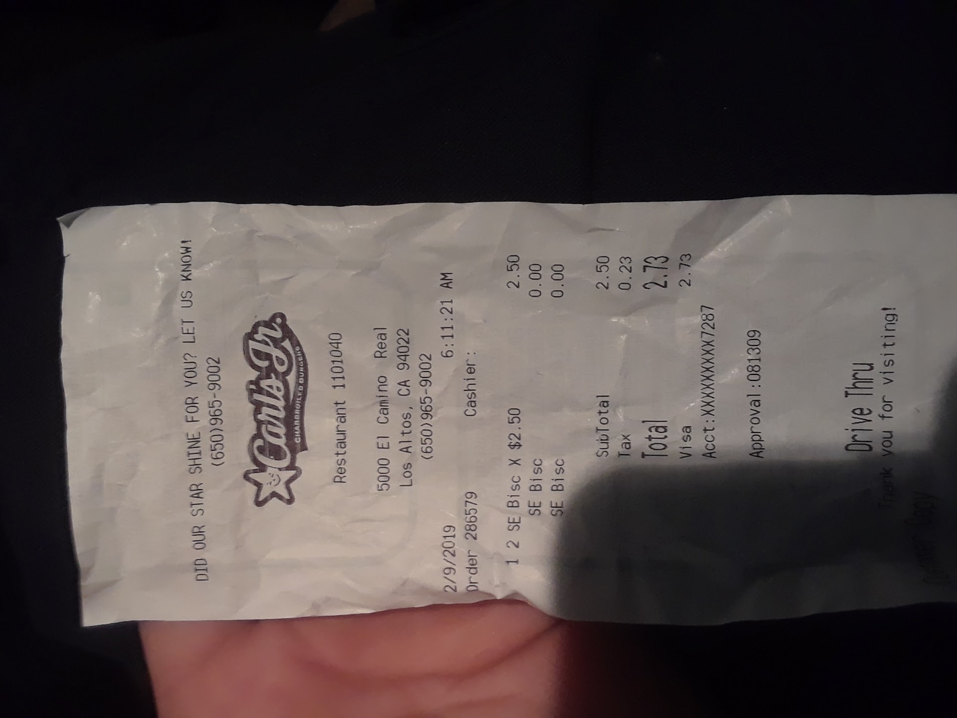 Read moreAs we parked the exterior, parking lot have is a bad vibe because it was run down and there were no customers. We get inside and the management hassled is over wanting a vegetarian option. Charged us $6 for three cups of water and then failed to bring one of our items with our meal. So the napkin holders on all tables were empty. Staff was combative and on edge as if something was amiss, just a weird feeling. Horrible experience overall, something is very wrong with this location. Usually Carl's Jr. Is a pleasant experience, this one was...