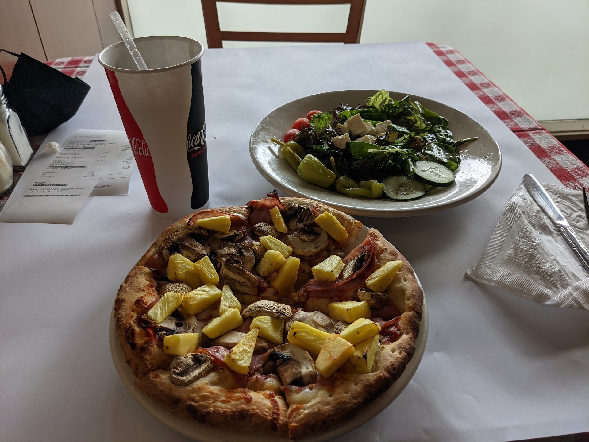 For a meal including pizza 🍕, salad 🥗, and a soda 🥤, I pay between $30 and $40.