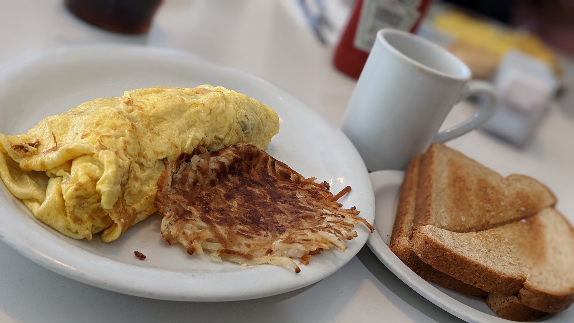 Read moreWhat a truly nice old school place. I had the corned beef hash breakfast. I ordered it without mushrooms and the waitress brought it out with mushrooms, immediately noticed and made a new one for me. Such wonderful service. The apple pancakes were delicious, not too sweet and perfect with the cinnamon sugar on top. My friend had the linguica sausage and it was soooo good. Not too spicy, full of flavor and nicely crisped. The hash browns could have been a little crunchier, but I would give them another try. It looks like they usually are perfectly cooked based on other reviews. Topped it off with some ice cream. Nothing special, just old school chocolate and strawberry. Really delicious. Highly recommend if diner food...